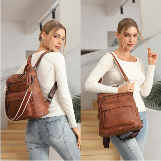 BOSTANTEN Leather Backpack Purse for Women Fashion Designer Shoulder Bag Convertible Travel Backpack Purses Brown