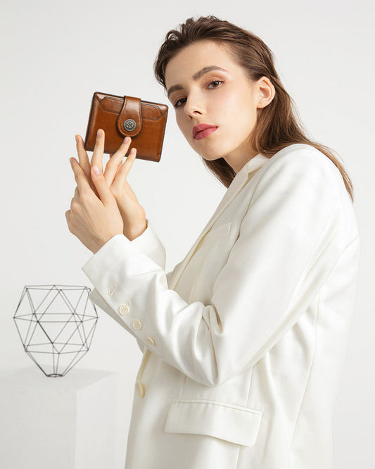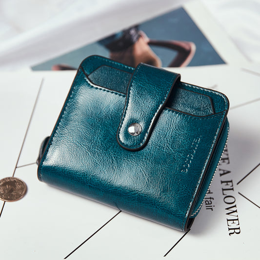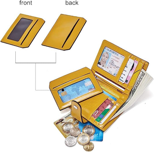 Leather Wallets for Women RFID Blocking Zipper Pocket Small Bifold Wallet Card Case