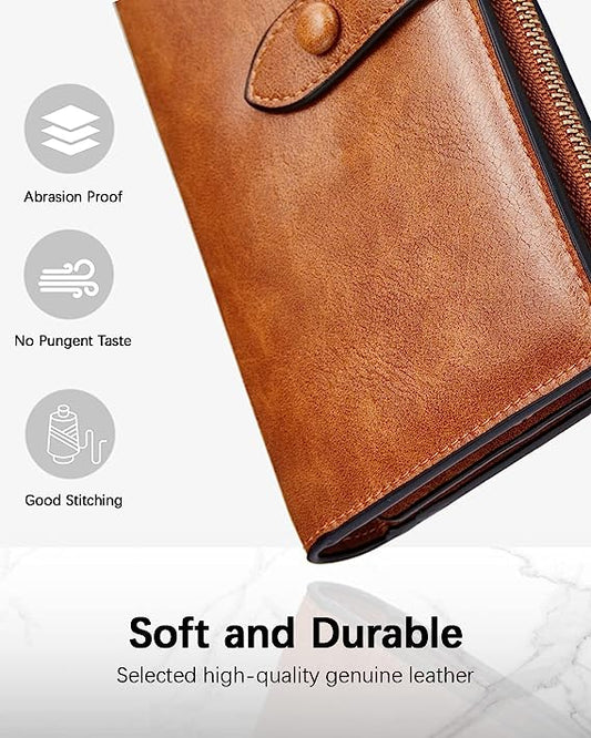 BOSTANTEN Women Wax Genuine Leather Wallet Credit Card Cash Holder Large Capacity Clutch Purse