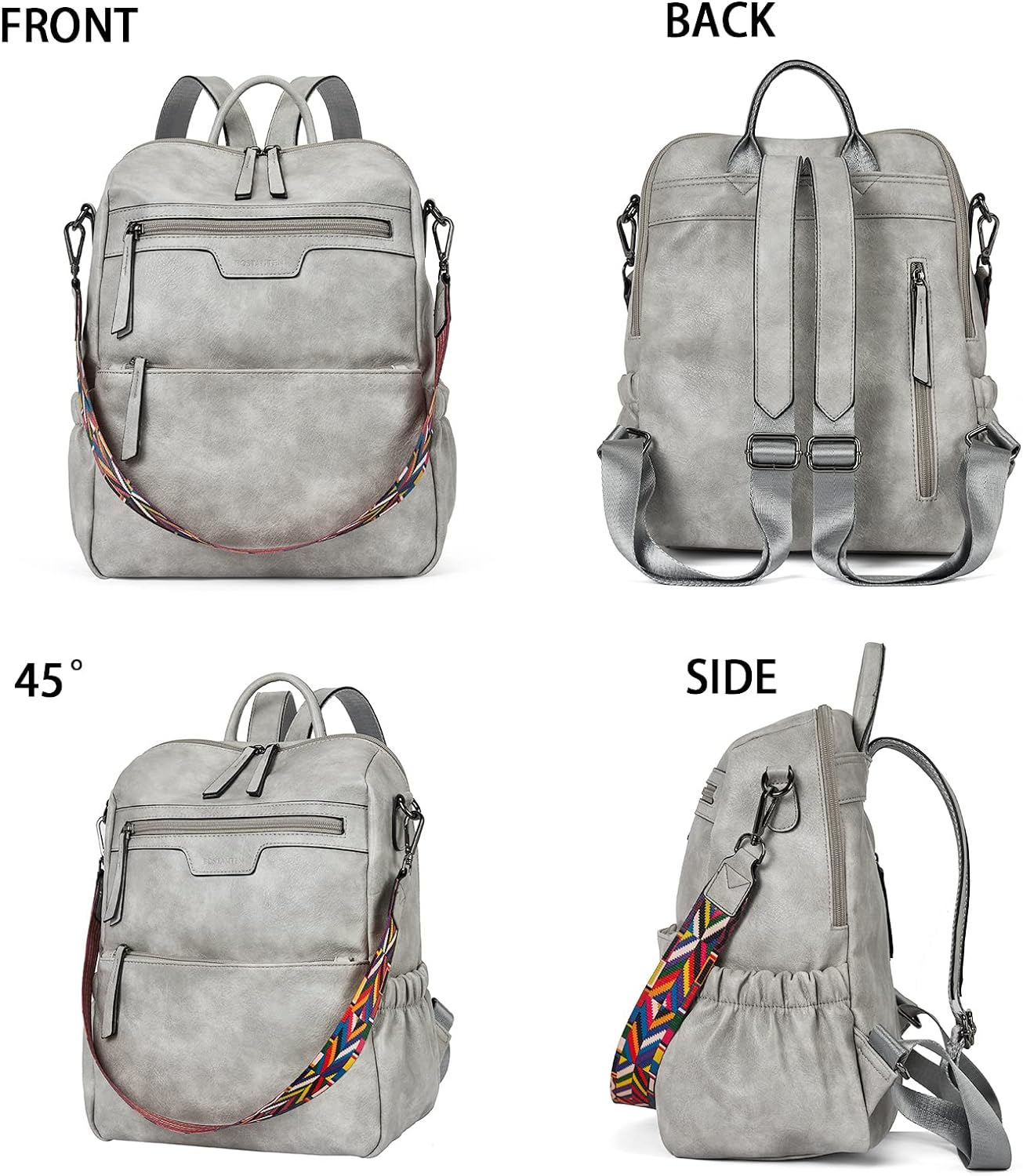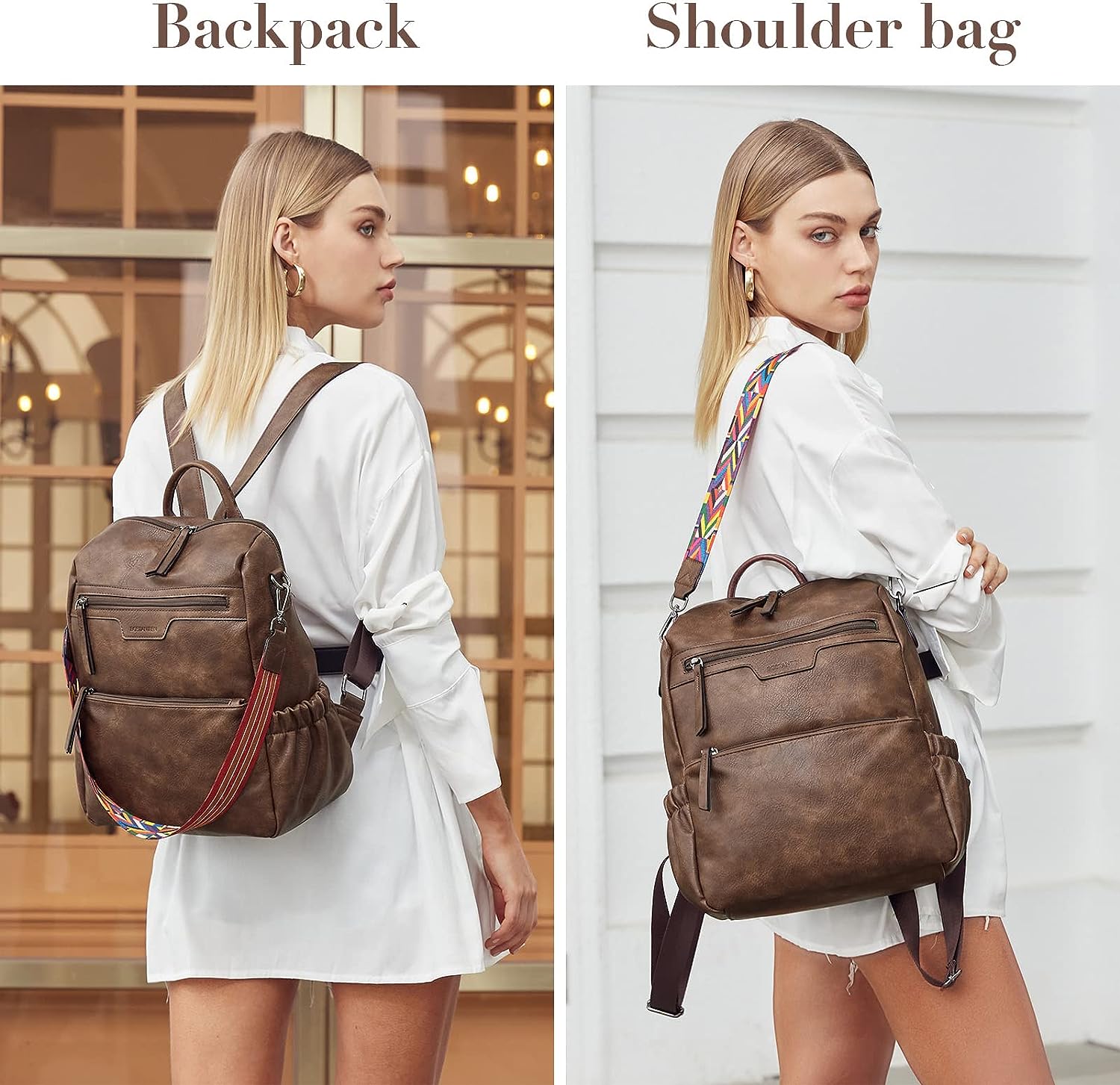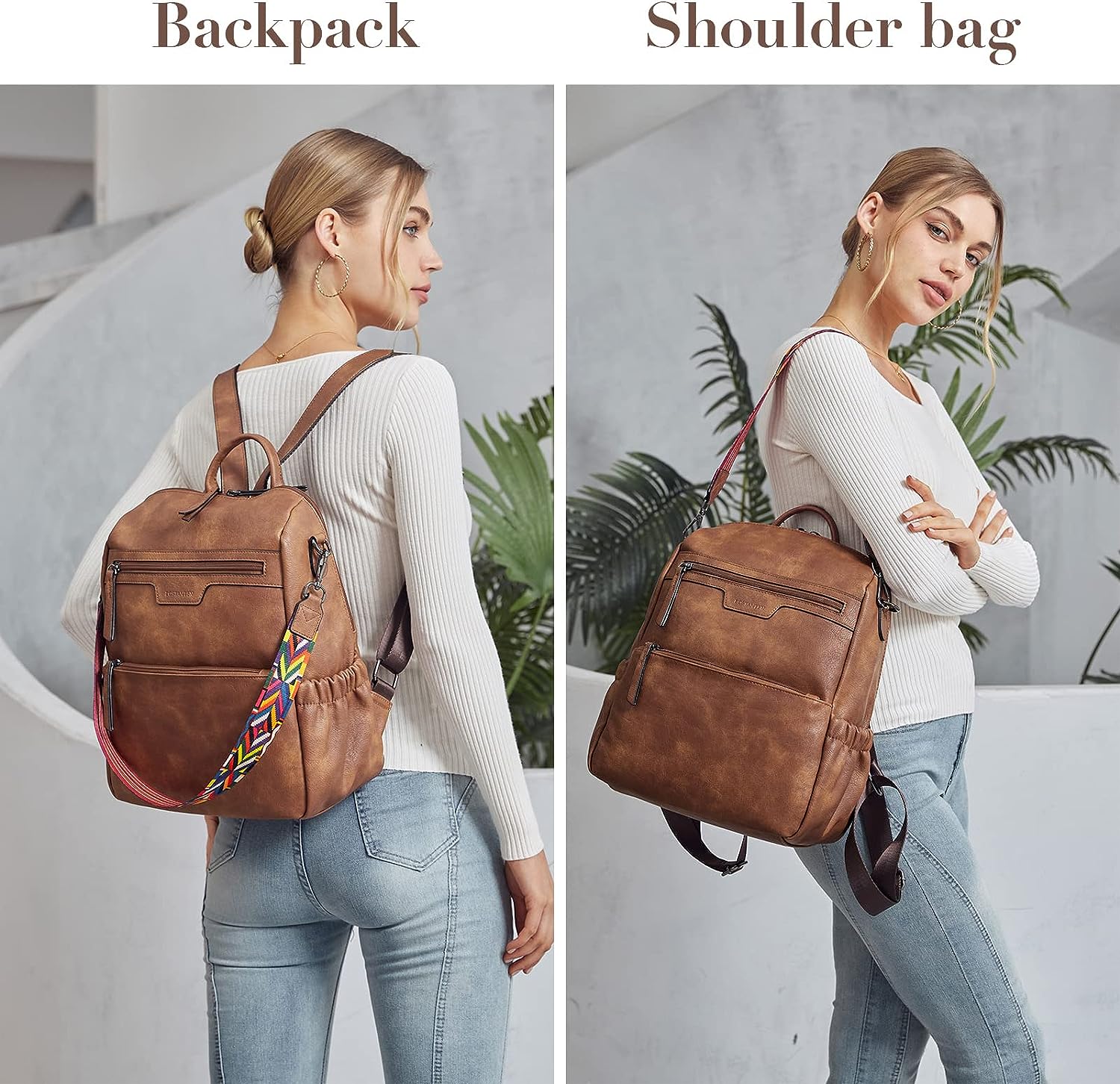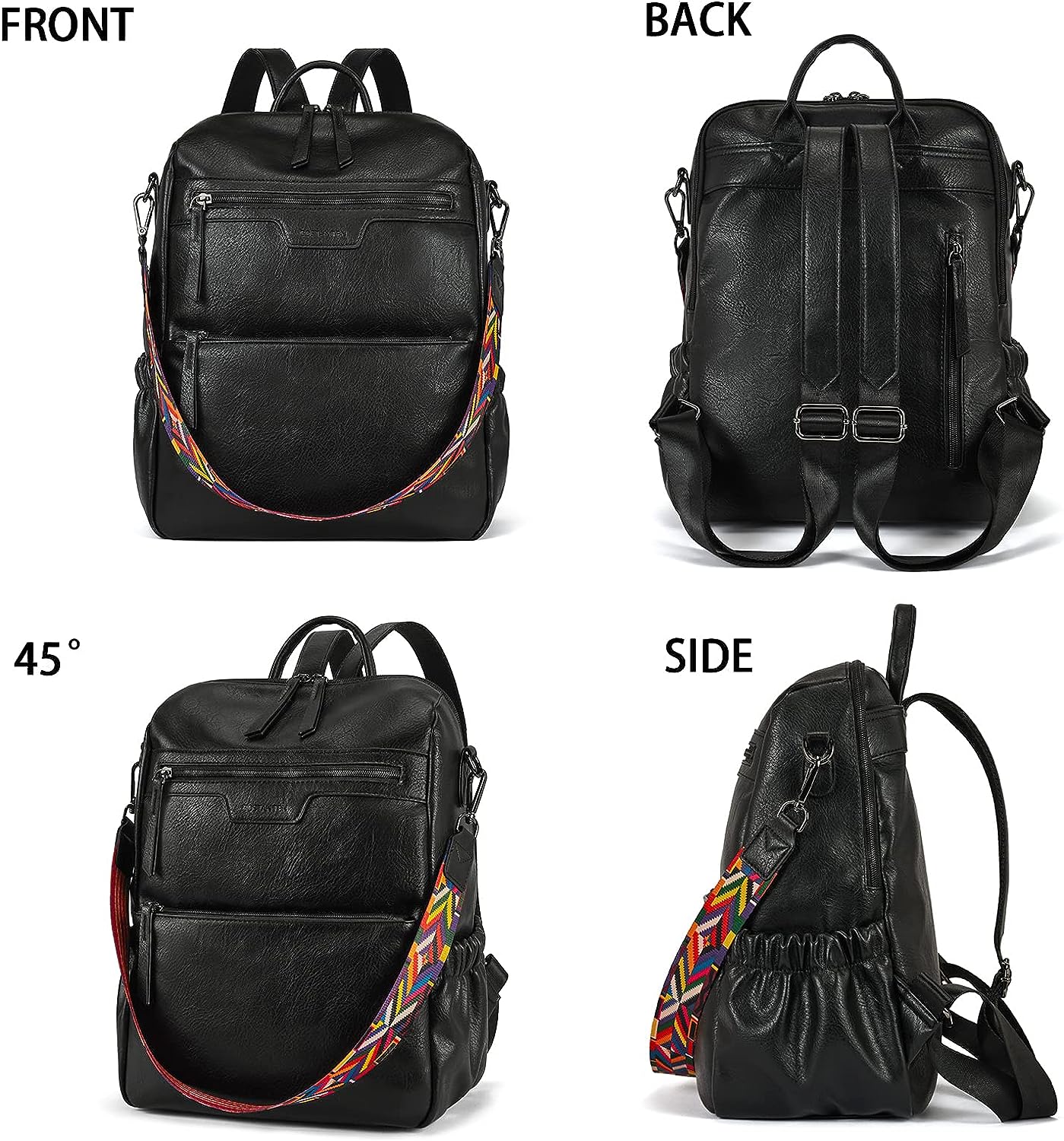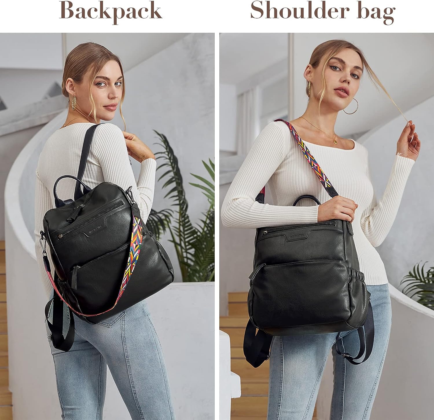 - HIGH-QUALITY MATERIAL: This womens backpack purse is made of high-quality water-resistant, tear-resistant soft PU leather, with reinforced stitching and drable fabric lining. The popular convertible design (backpack to shoulder bags) makes this convertible backpack purse suitable for a variety of use scenarios. Design with colorful shoulder straps makes the leather backpack purse fashionable and distinctive.