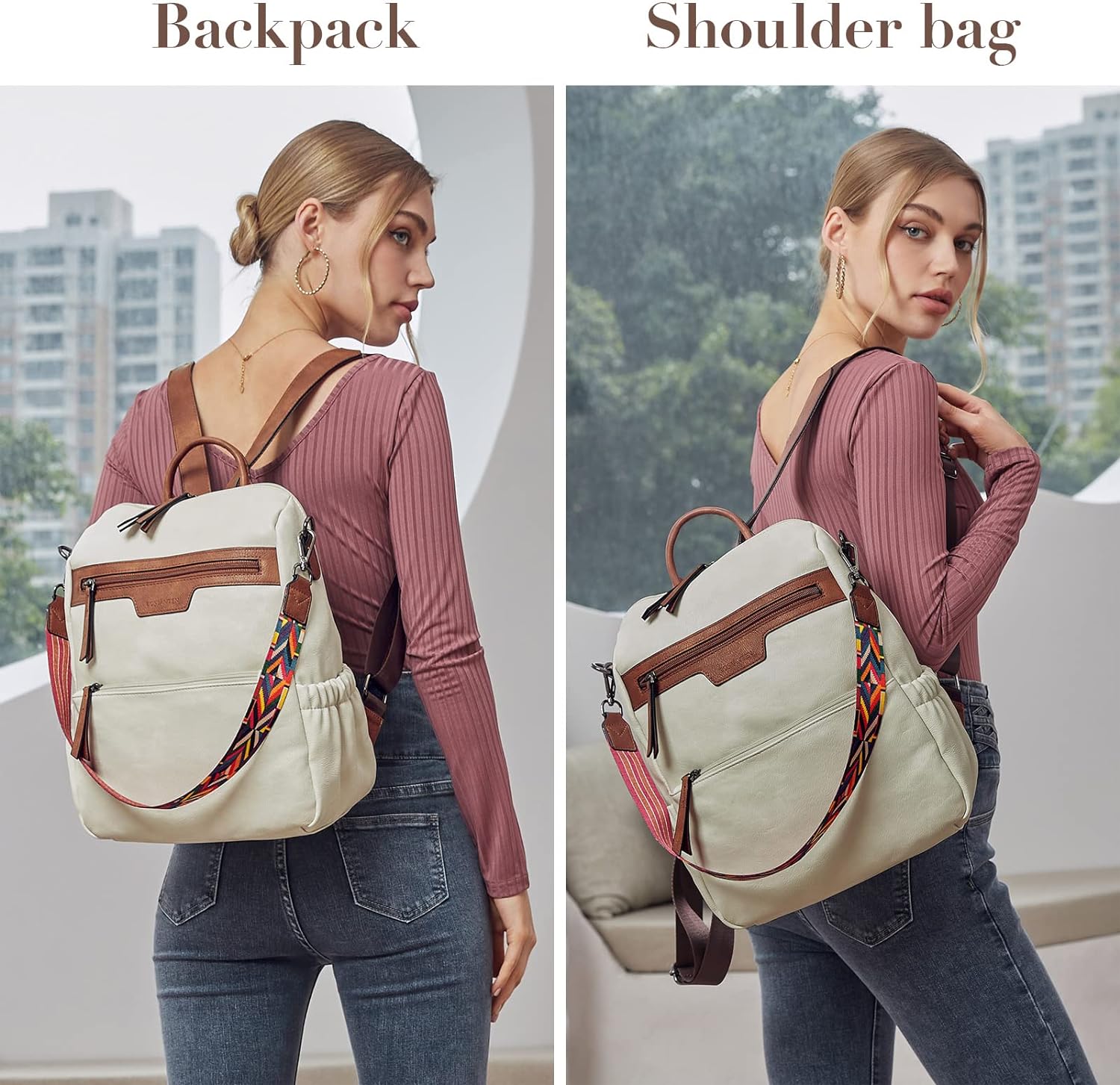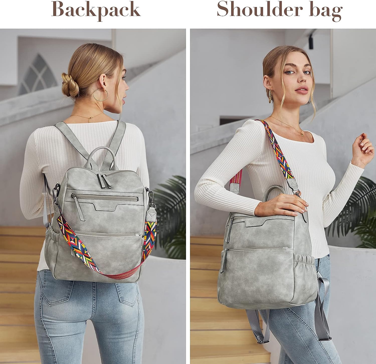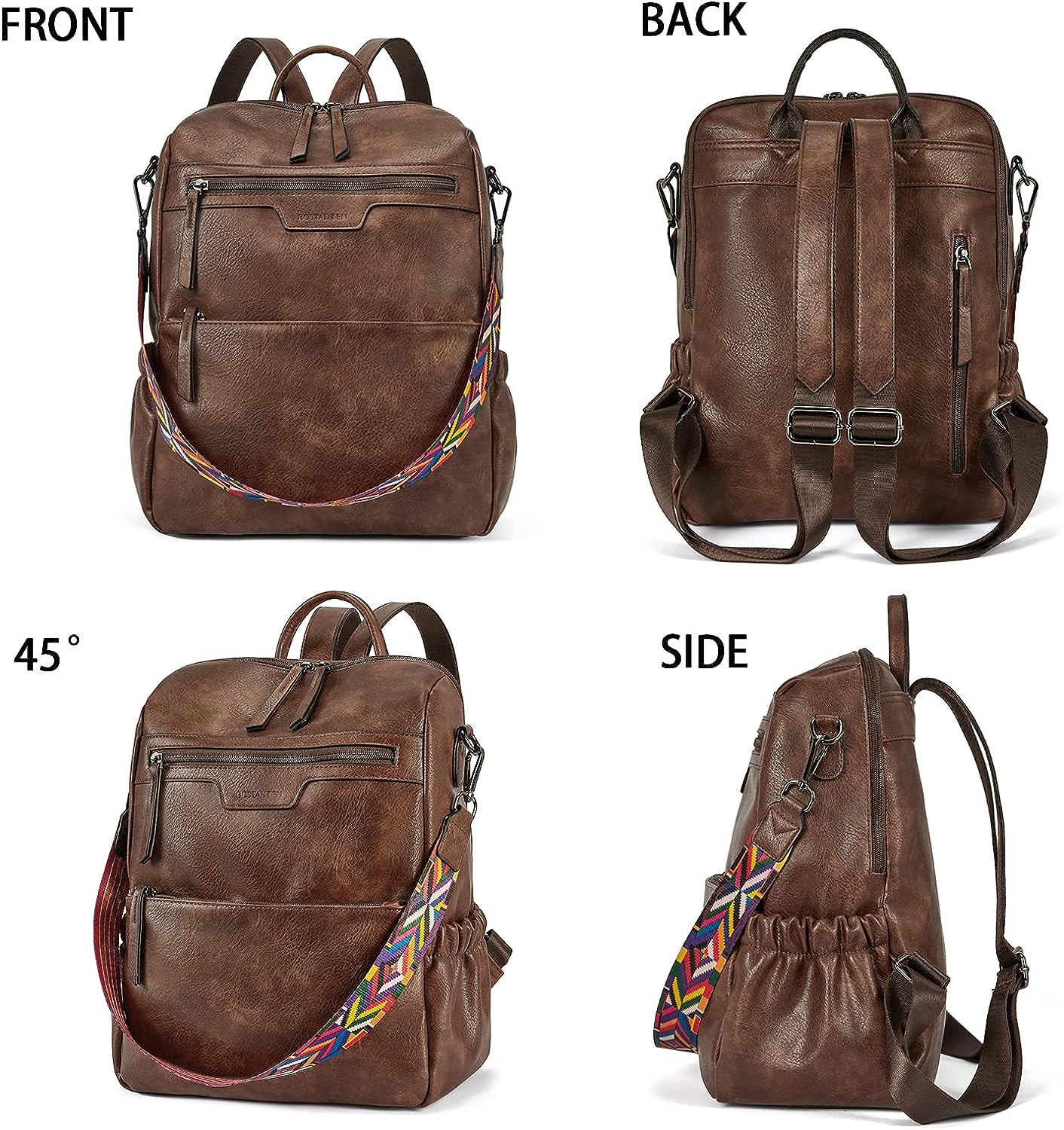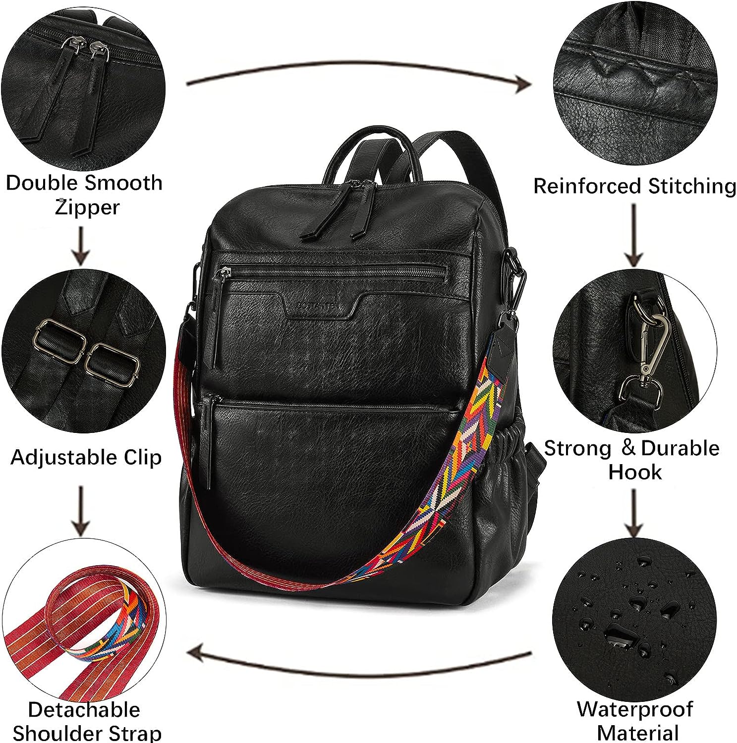 - HIGH-QUALITY MATERIAL: This womens backpack purse is made of high-quality water-resistant, tear-resistant soft PU leather, with reinforced stitching and drable fabric lining. The popular convertible design (backpack to shoulder bags) makes this convertible backpack purse suitable for a variety of use scenarios. Design with colorful shoulder straps makes the leather backpack purse fashionable and distinctive.