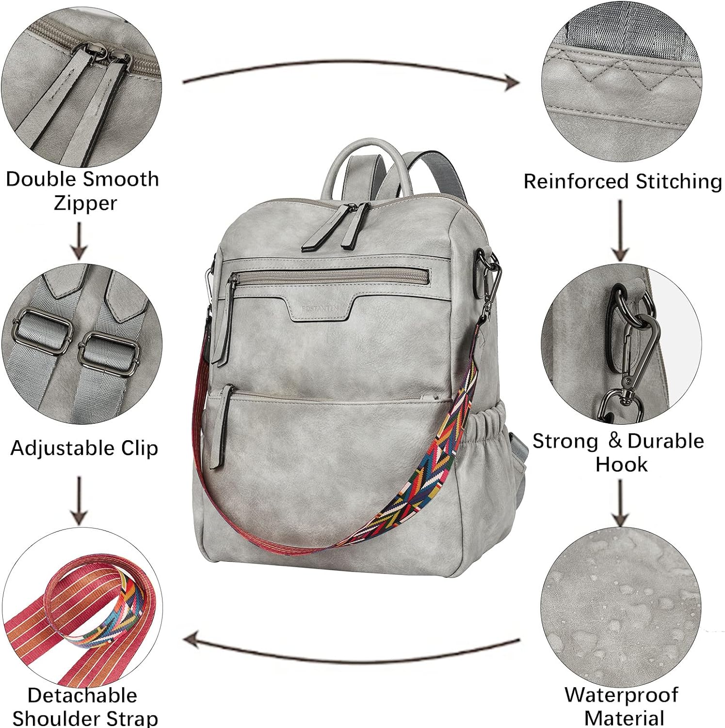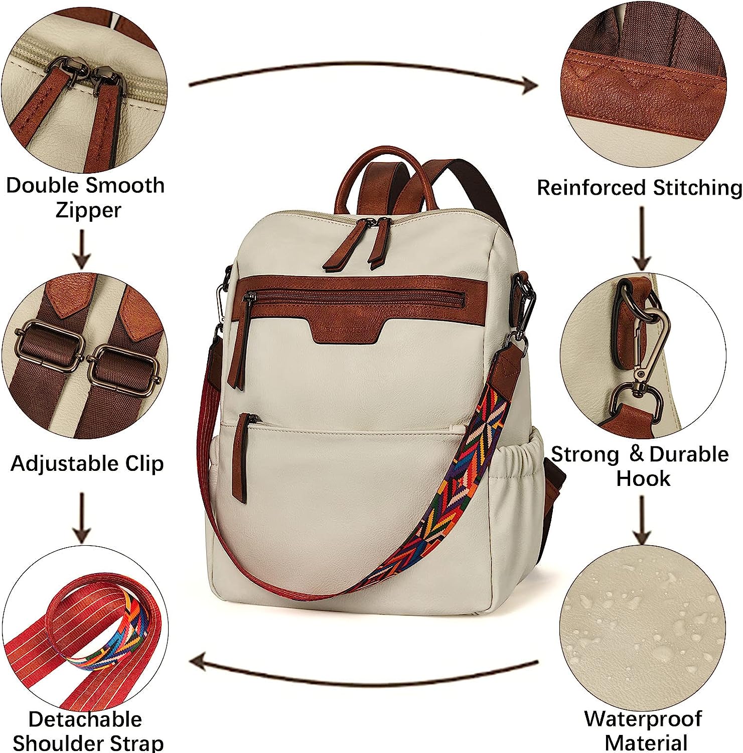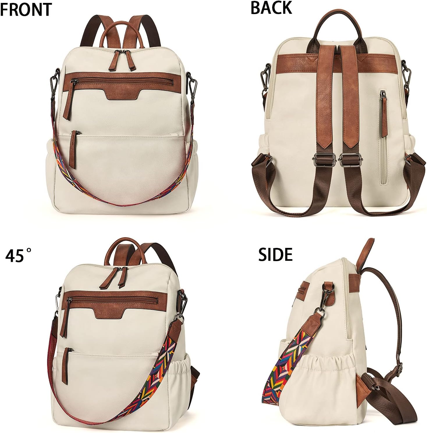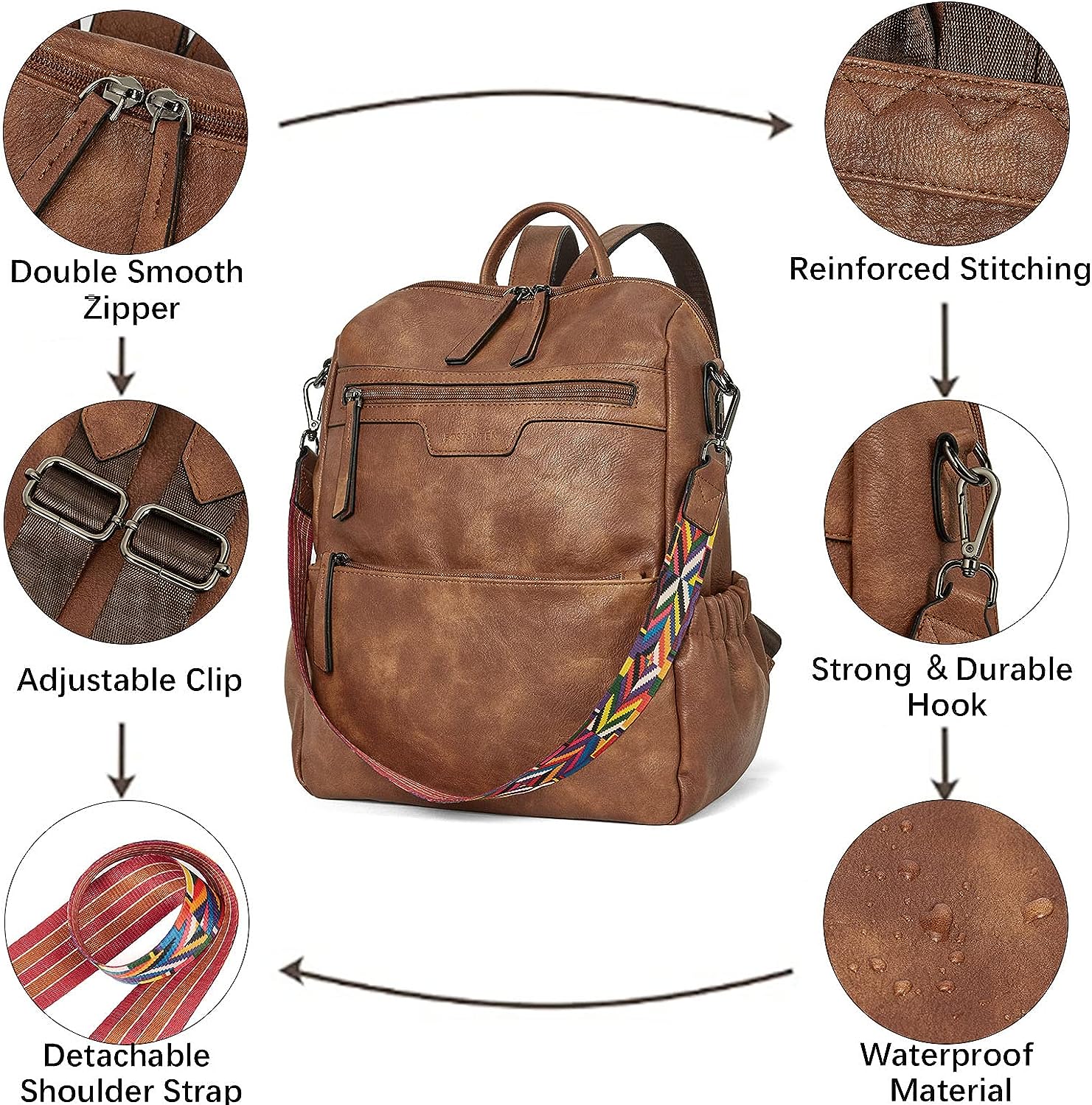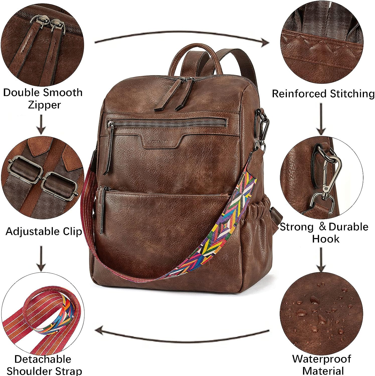 - HIGH-QUALITY MATERIAL: This womens backpack purse is made of high-quality water-resistant, tear-resistant soft PU leather, with reinforced stitching and drable fabric lining. The popular convertible design (backpack to shoulder bags) makes this convertible backpack purse suitable for a variety of use scenarios. Design with colorful shoulder straps makes the leather backpack purse fashionable and distinctive.