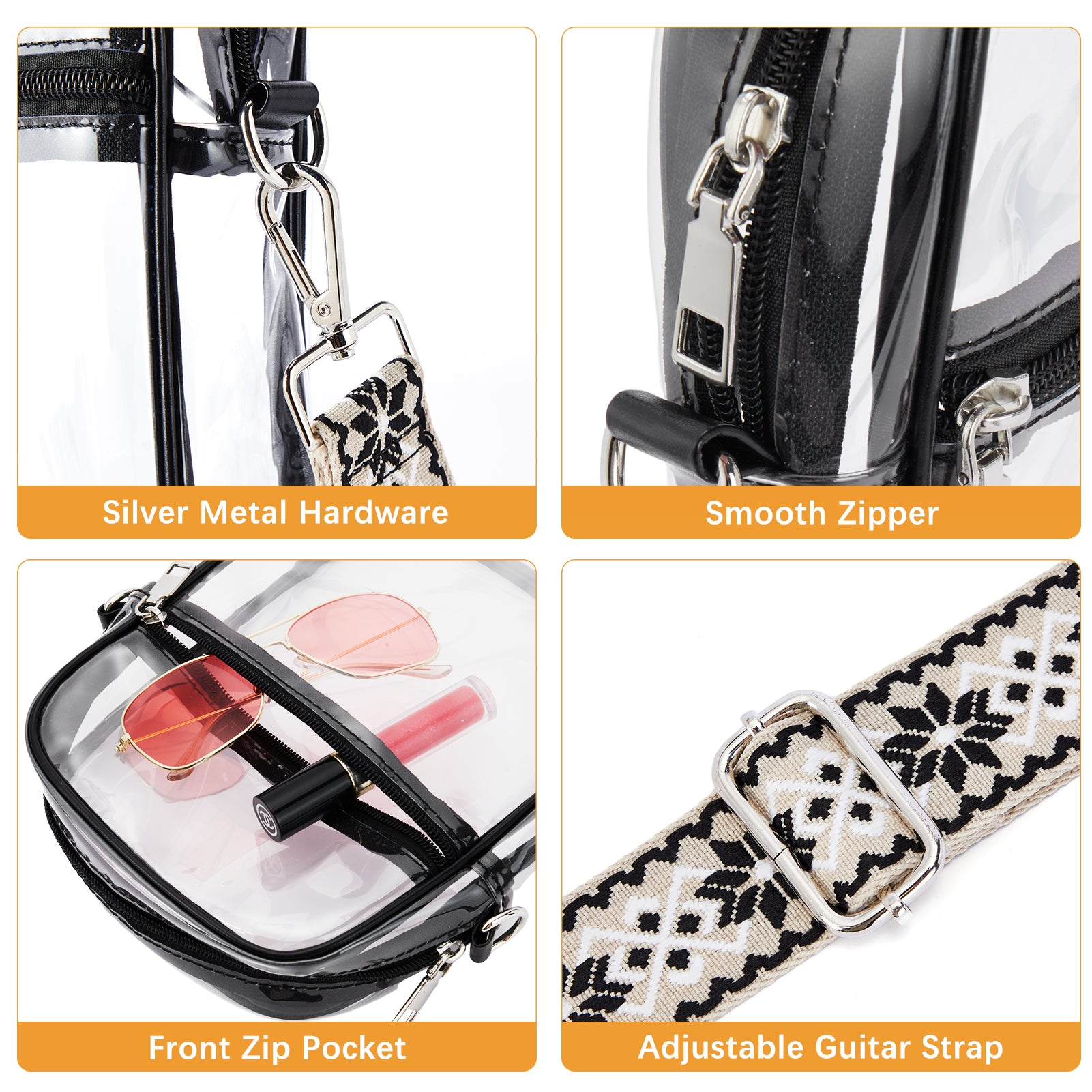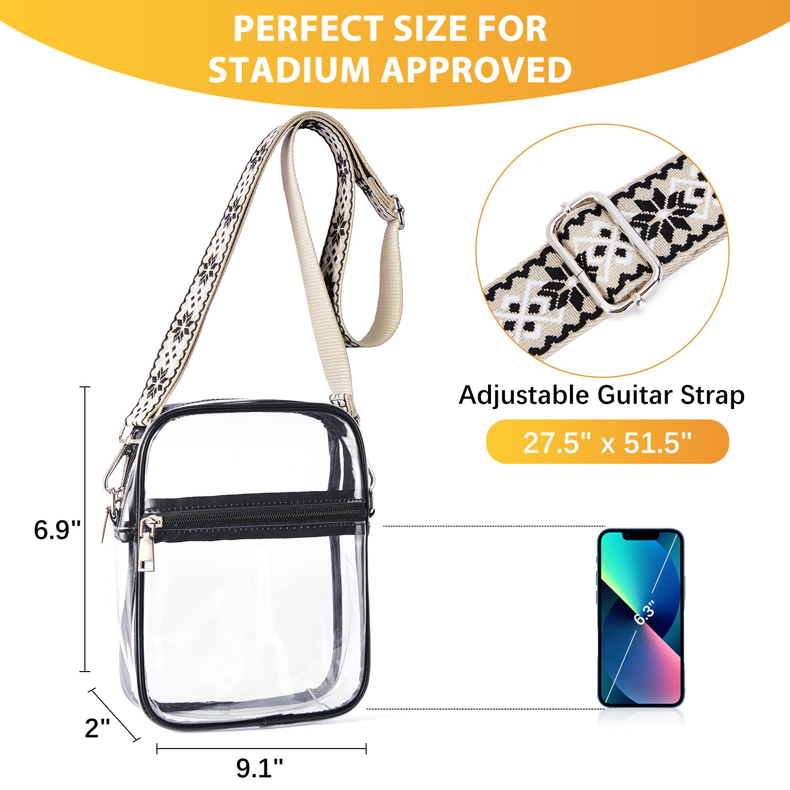 - 【Multi-Purpose Fit More Occasion】- BOSTANTEN clear purse is completely meet stadium size, Clear design with pretty guitar strap to add stylish touch, You can carry it to any stadium or concerts where requires clear bags, Or just carry it in daily, It would also be an great gift for women in any festival.