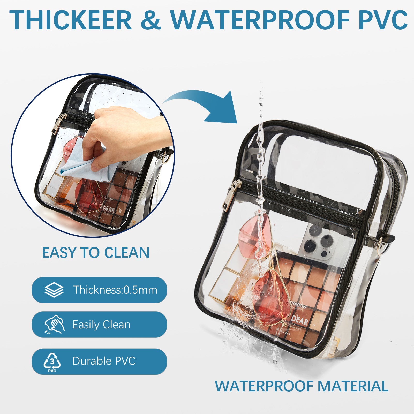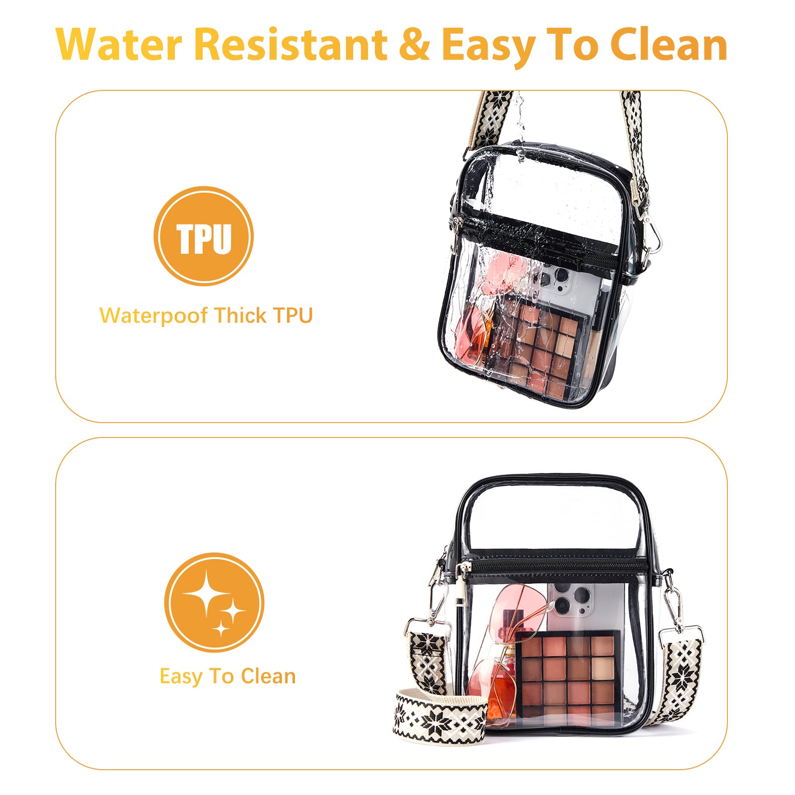 - 【Soft Lightweight Thicker TPU】- Our clear crossbody bag used thick TPU with a longer service life in everyday, Soft also waterproof (But not immerse in water), Easy to clean with paper or damp cloth, Better protect your things from splashing water, Keeping all your stuff dry all the time.