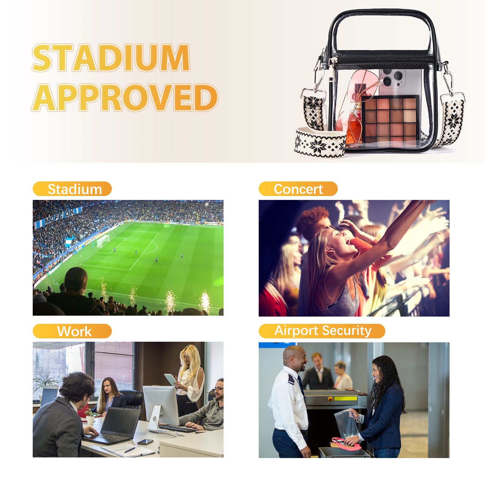 - 【Stadium Approved & Quickly Pass Securiy】- Our clear purses for women stadium is completely meet clear-bag-policy size, Perfectly go with it for all stadium, concerts, festivals, airport or other, Convenient & Save time for any security check everything.
