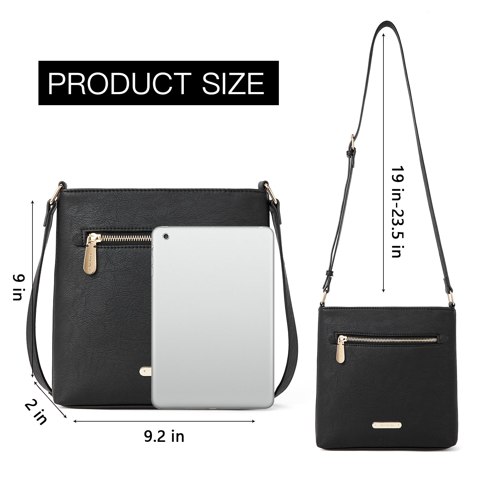 - Small & Lightweight: Our crossbody bags measure 9"(L) x 1.7"(W) x 10.1"(H). Weight: 0.99lb/0.45Kg, Comfortable in carrying over the shoulder. This crossbody purses has a long strap, length range from 18.5" to 23" that can be adjusted it as needs. And brings you a stylish and daily flair to all your looks with three functions: crossbody bag, shoulder bag and handbag.