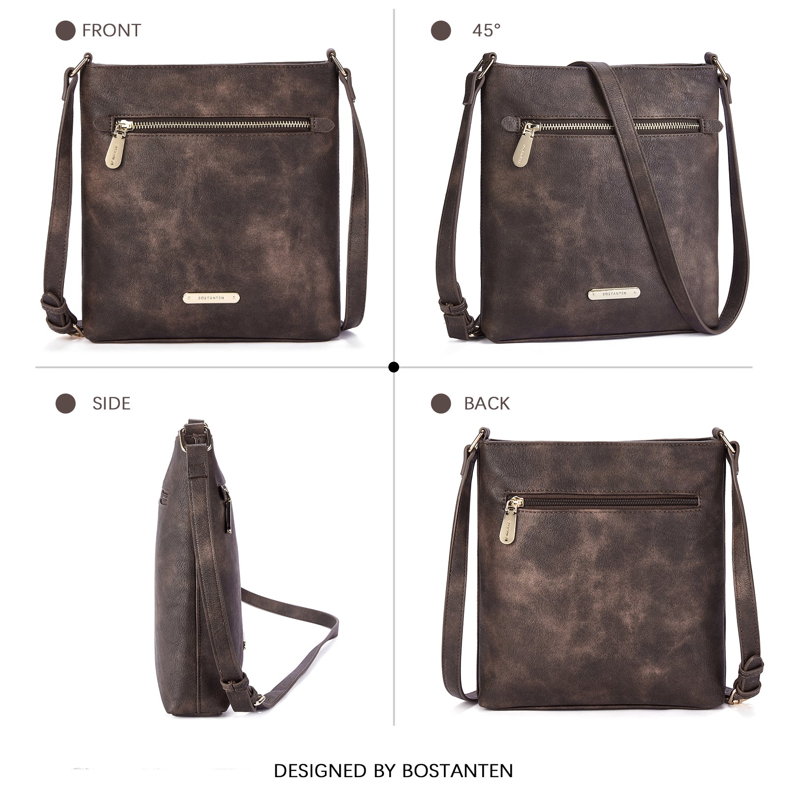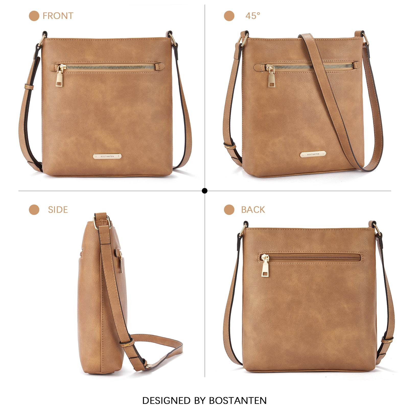 BOSTANTEN Crossbody Bags for Women Trendy Leather Designer Cell Phone Multi Pocket Cross Body Purses Shoulder Handbag Ladies