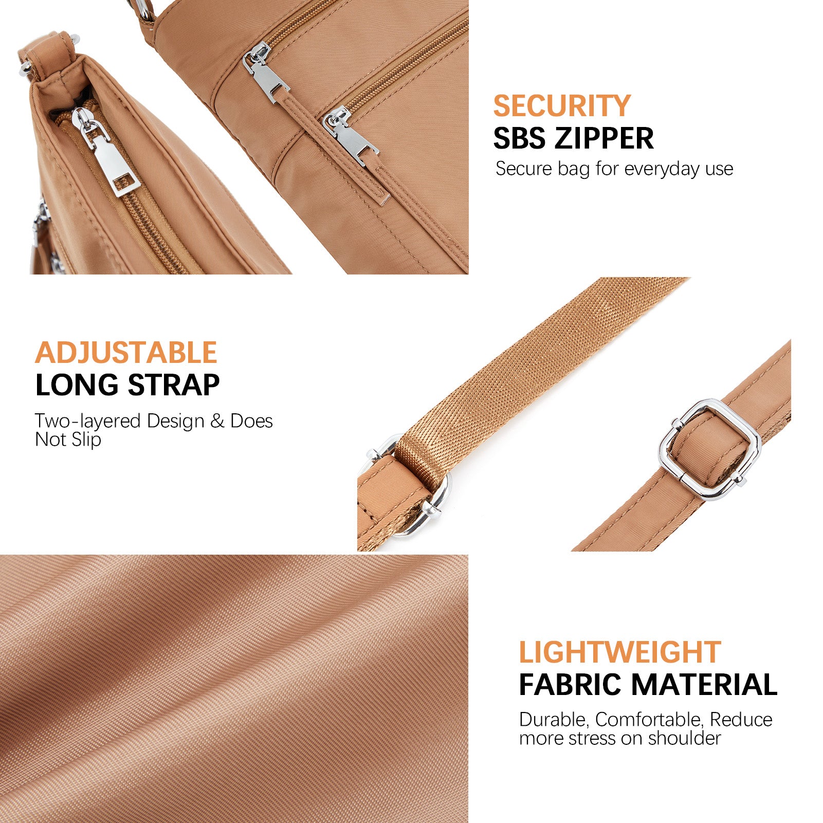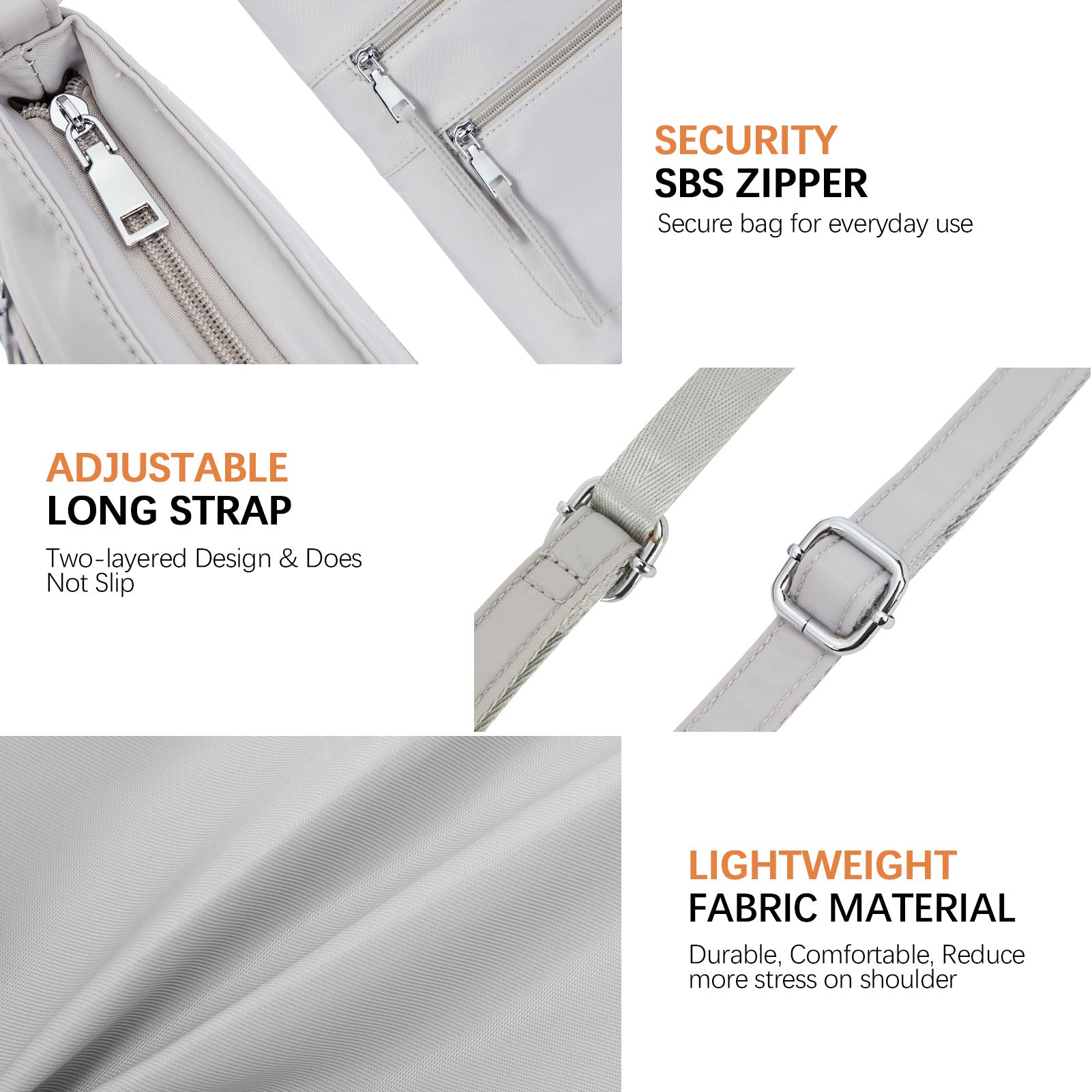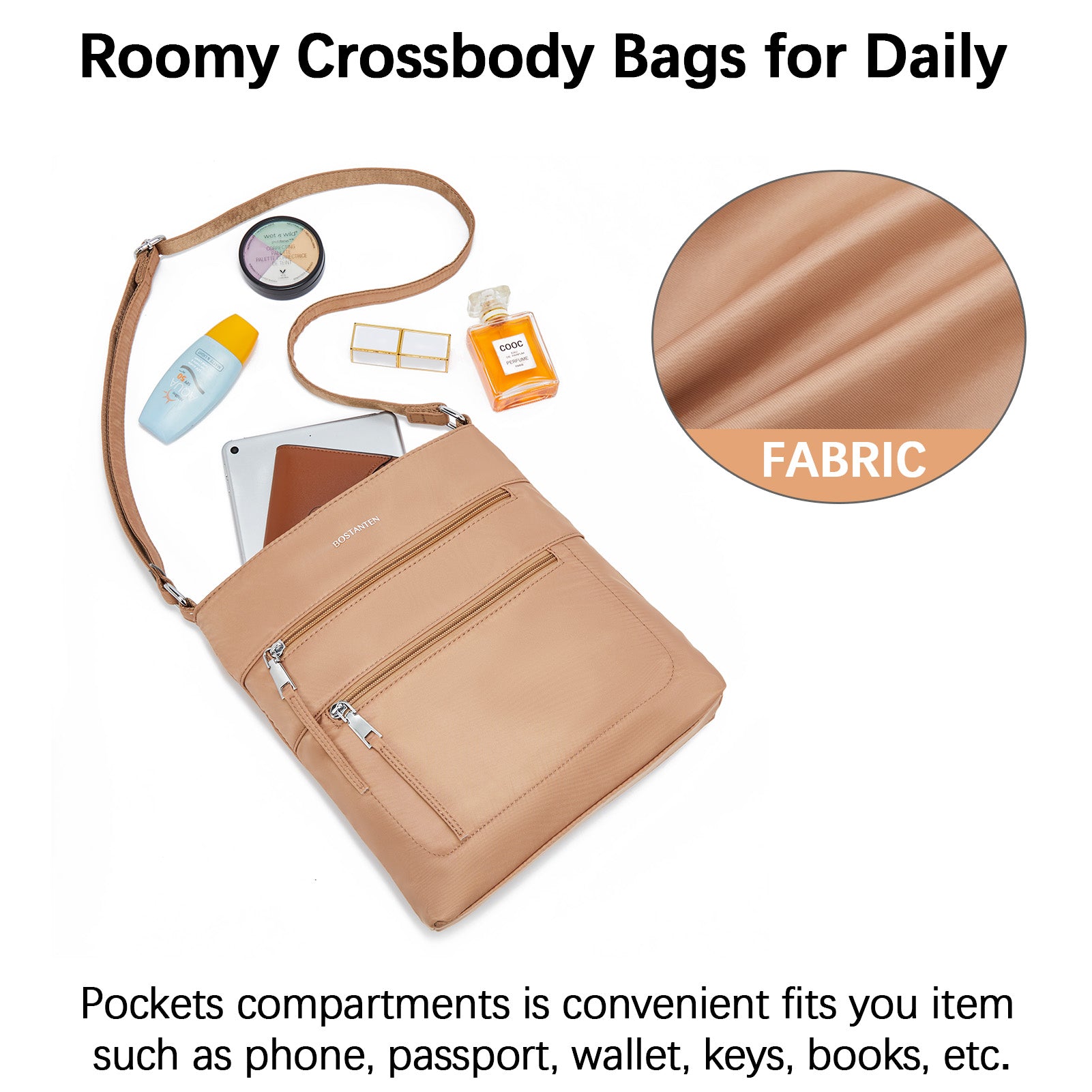 - Trendy Crossbody Bag : Lightweight & Durable Fabric material, Easy cleaning with machine washing or just simply wipe it with damp cloth. SBS zipper equipped in multiple-pockets, Smooth & Easy access to open or close, Also keep bags essentials in safety condition when outside. The crossbody bags aim to a lightweight, affordable and enough security features for you.