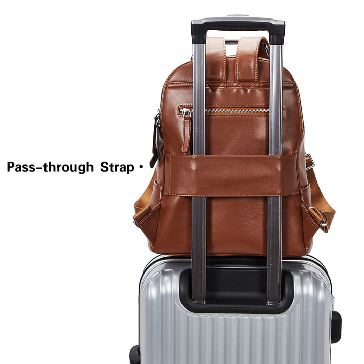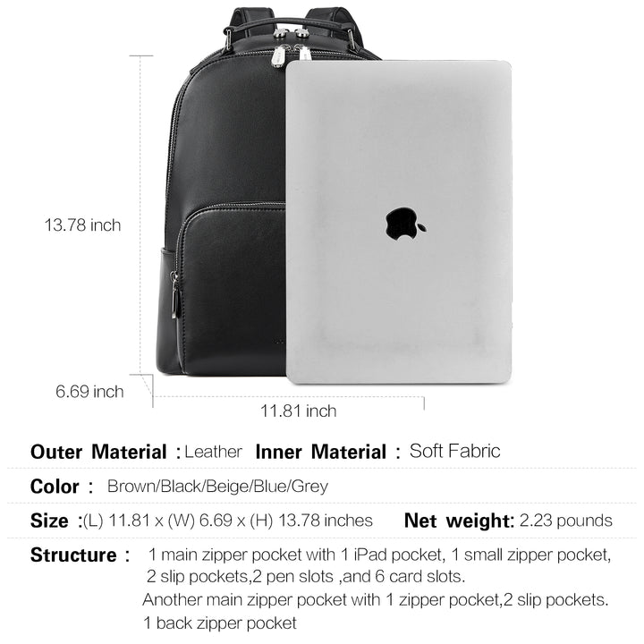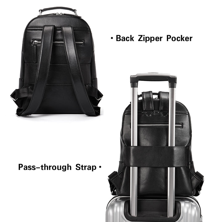 - HIGH-END MATERIAL: The leather backpack is made of high-quality genuine cowhide leather material and fabric lining, which is fashionable and durable. U-zip opening to the main compartment with padded laptop pocket and accordion division for files.