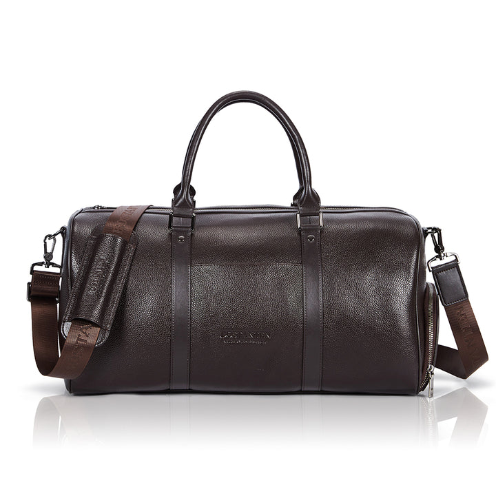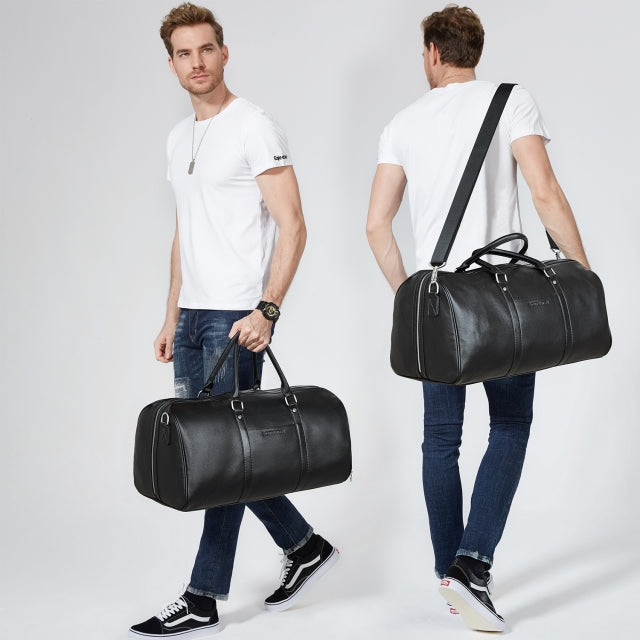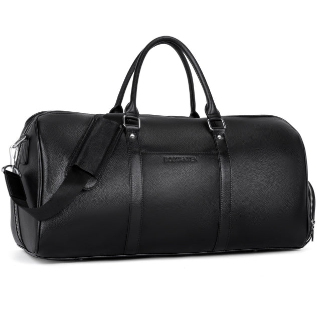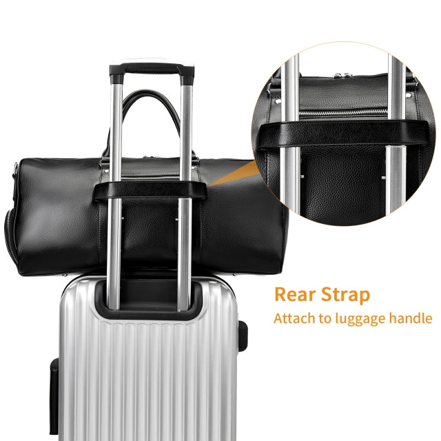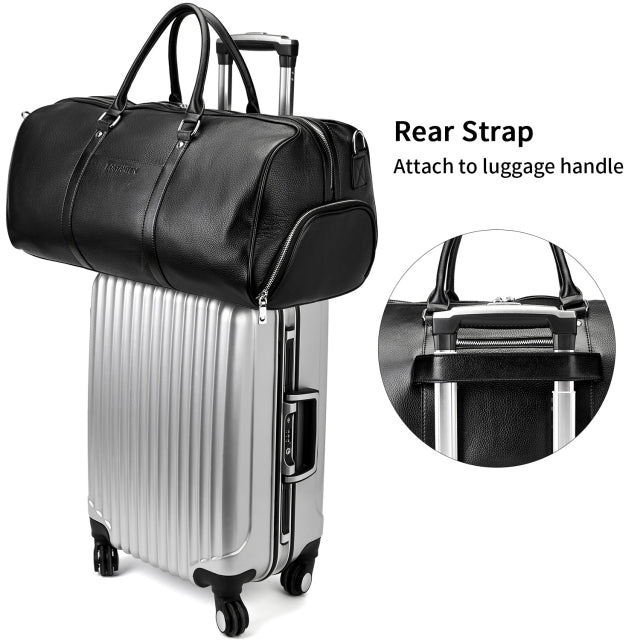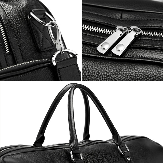 - High quality -- The leather travel bag is made of high quality genuine supple cowhide leather, durable fabric lining, and heavy-duty silver hardware. Smooth zipper closure keeps your clothes and shoe stable and safe.