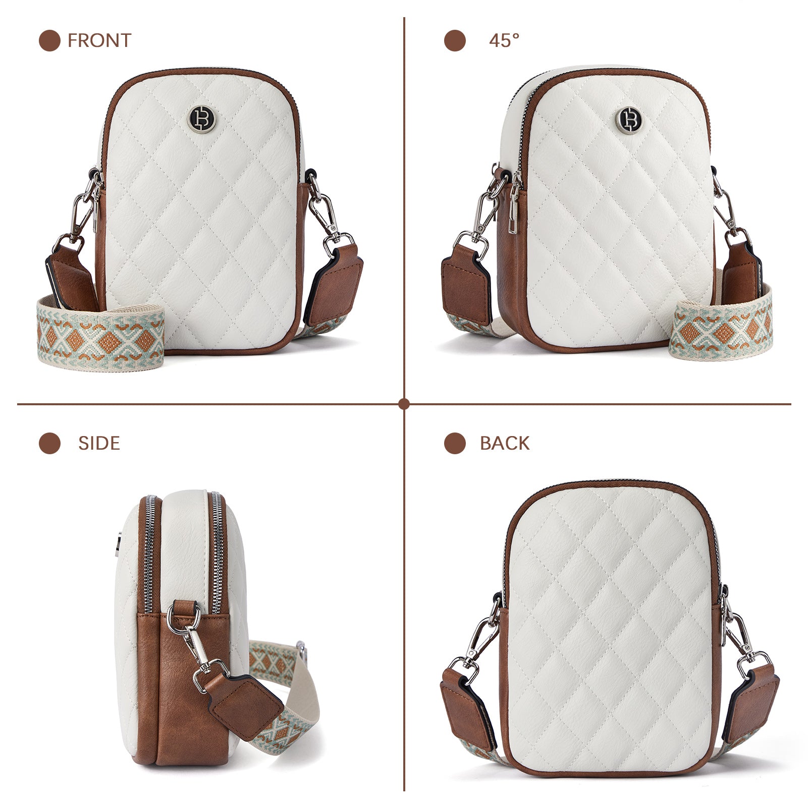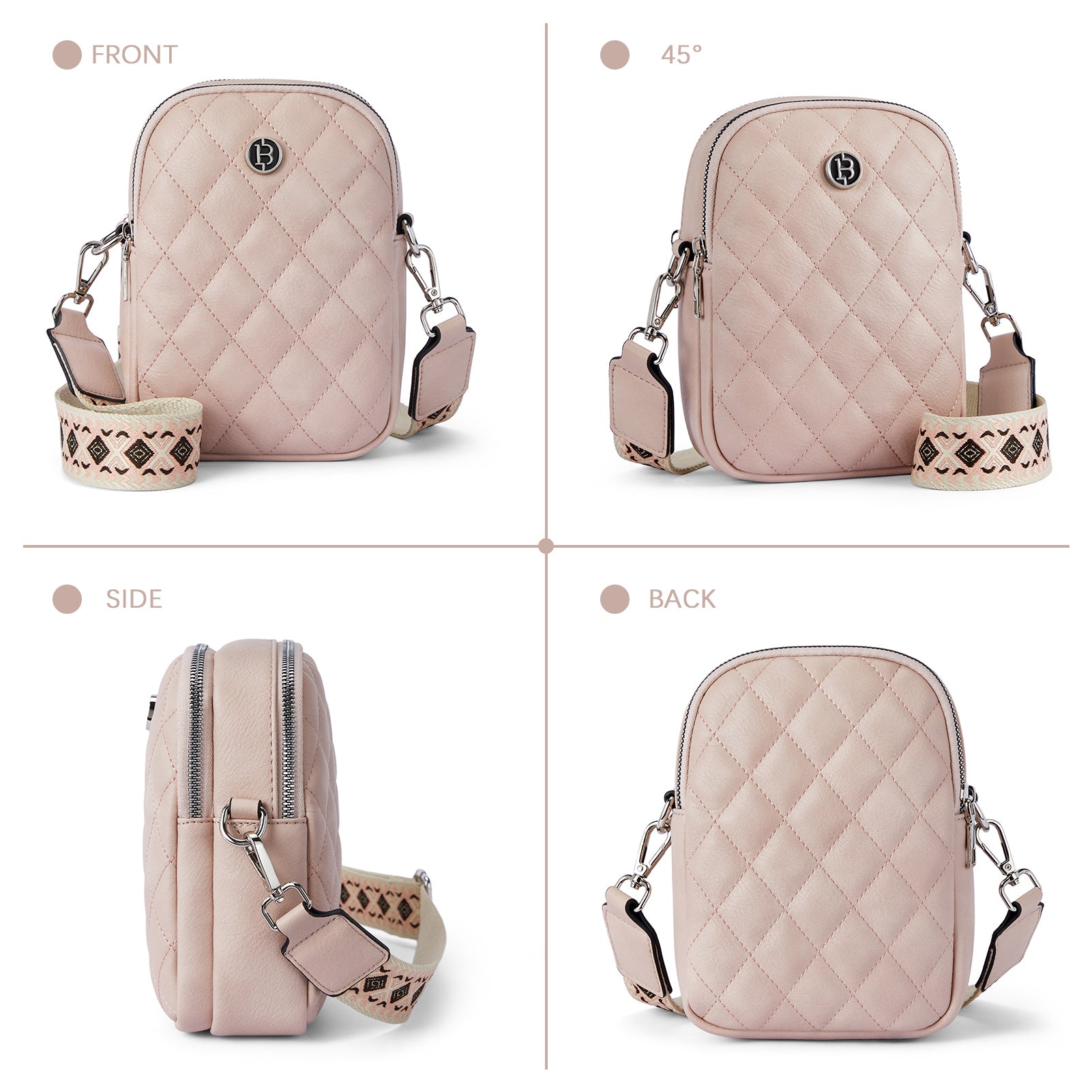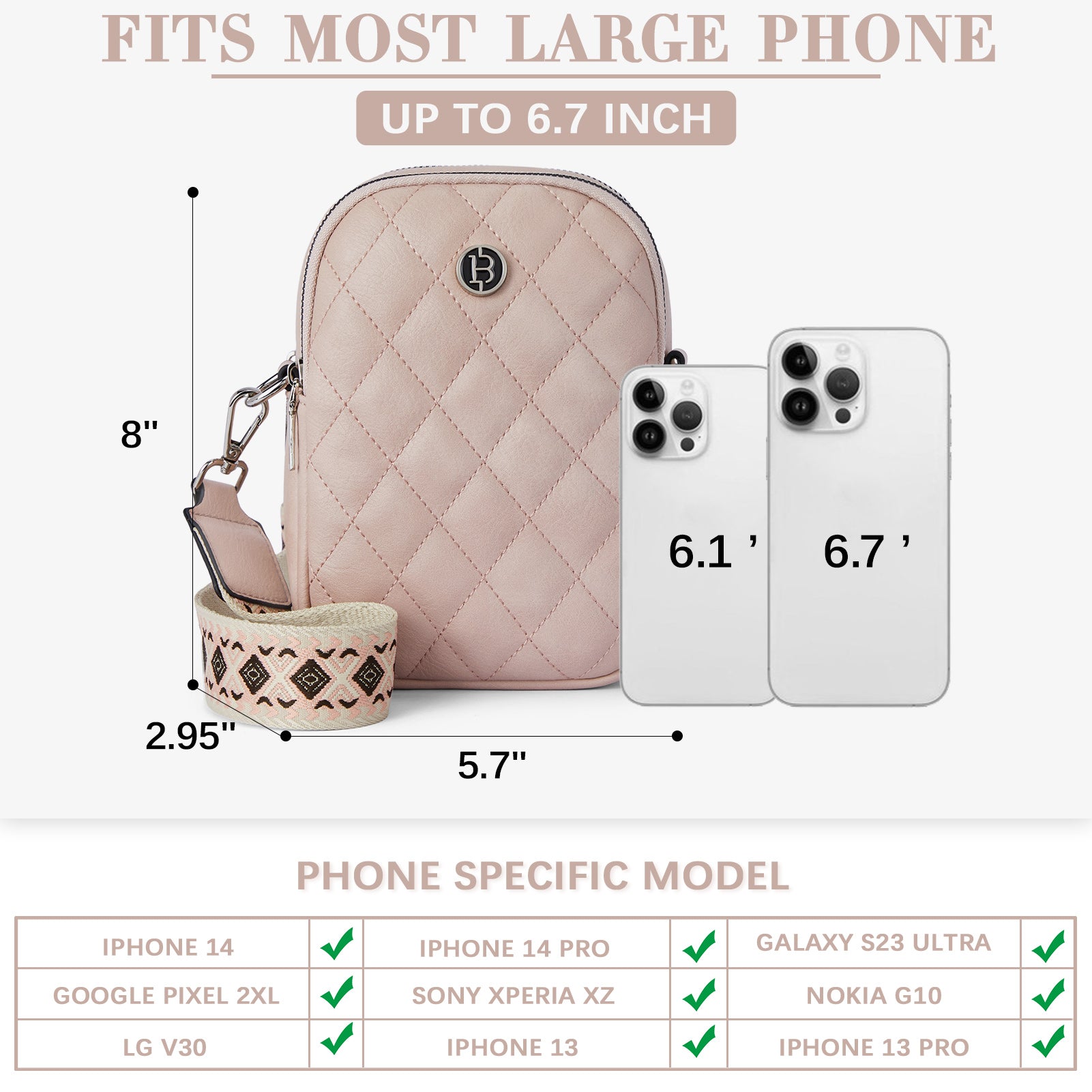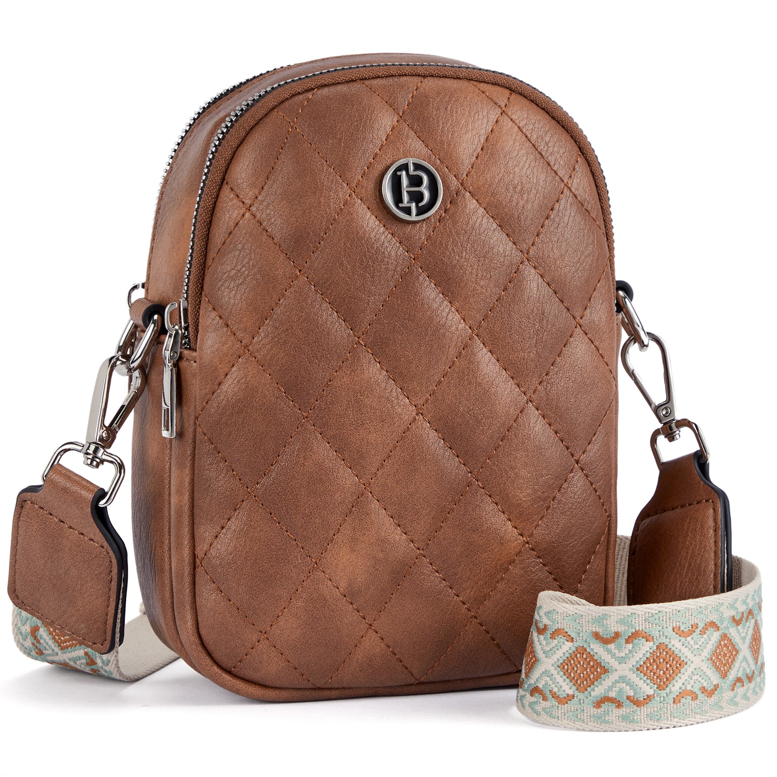 BOSTANTEN Small Cell Phone Crossbody Bags Trendy Quilted Leather Cross Body Wallet Purse Adjustable Strap