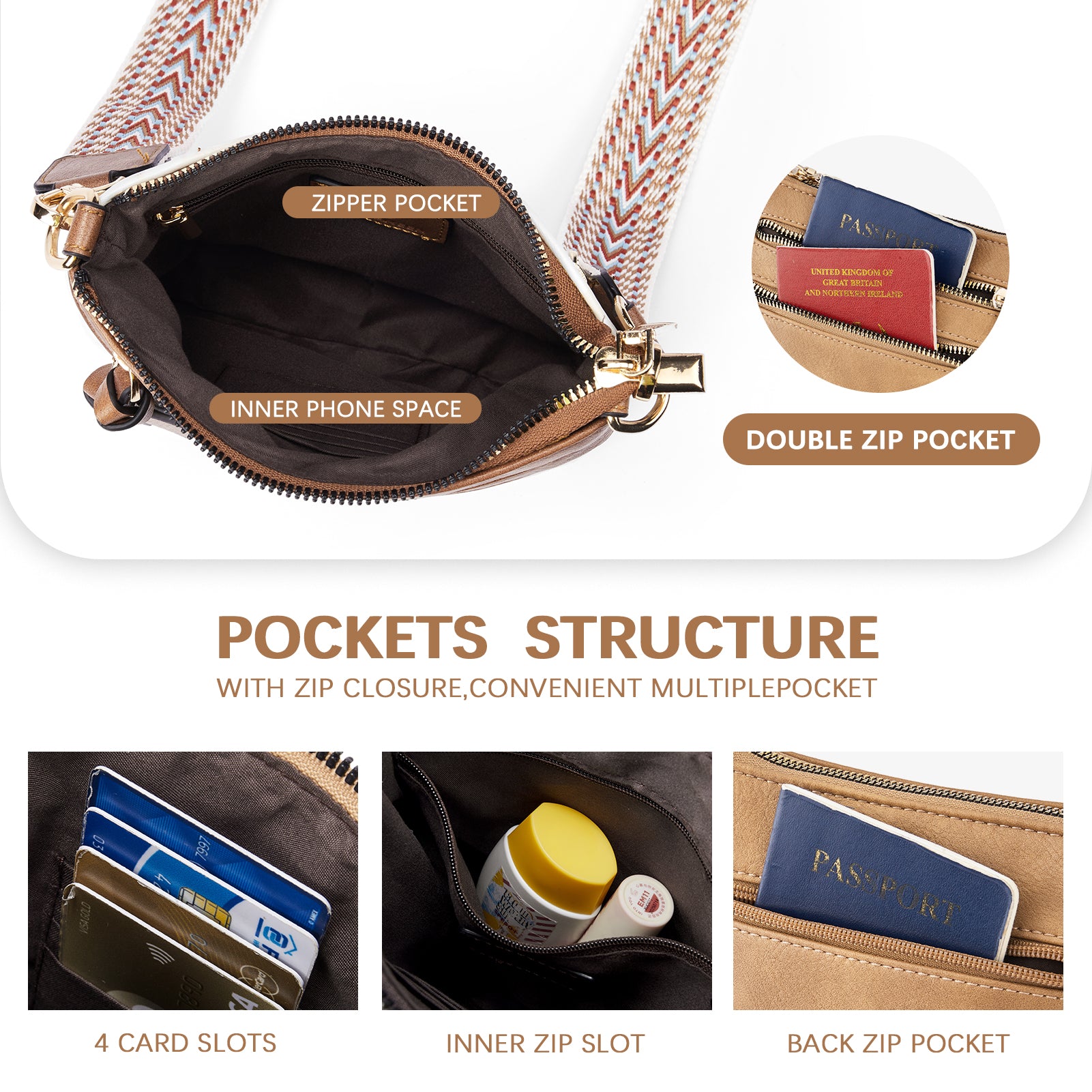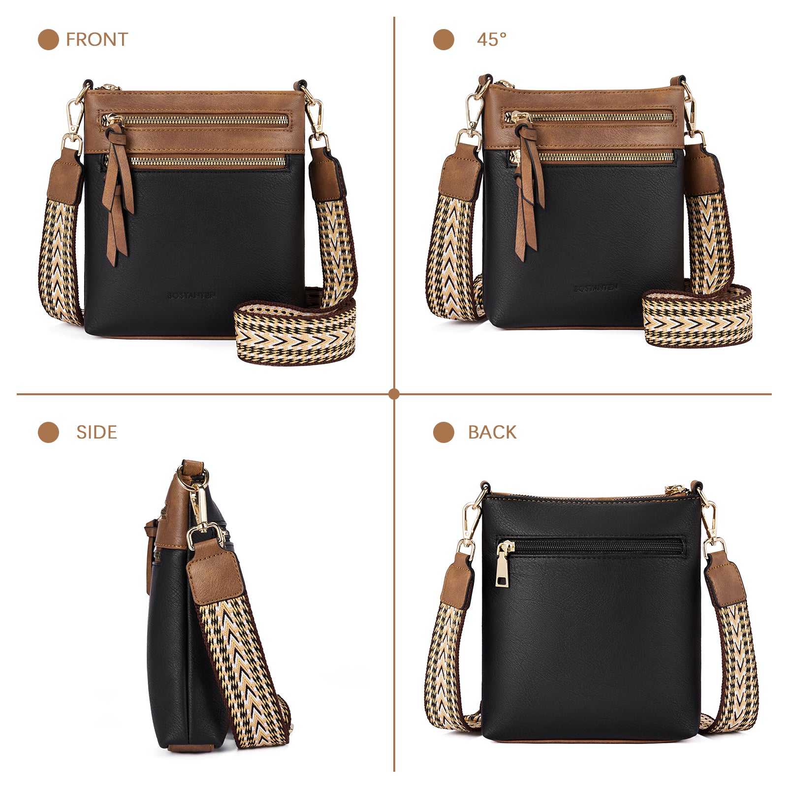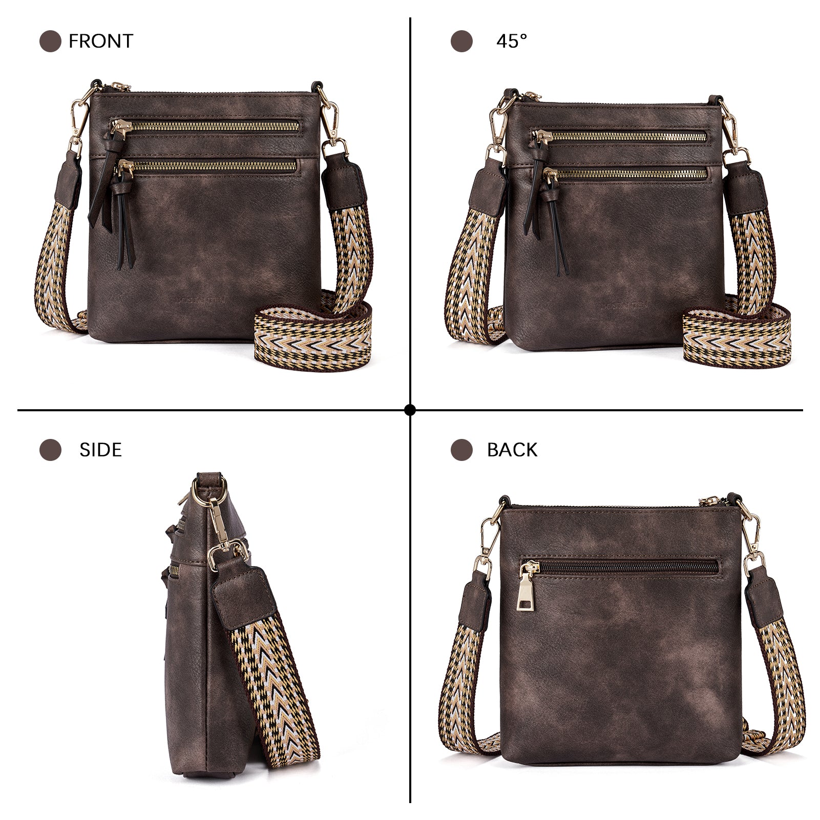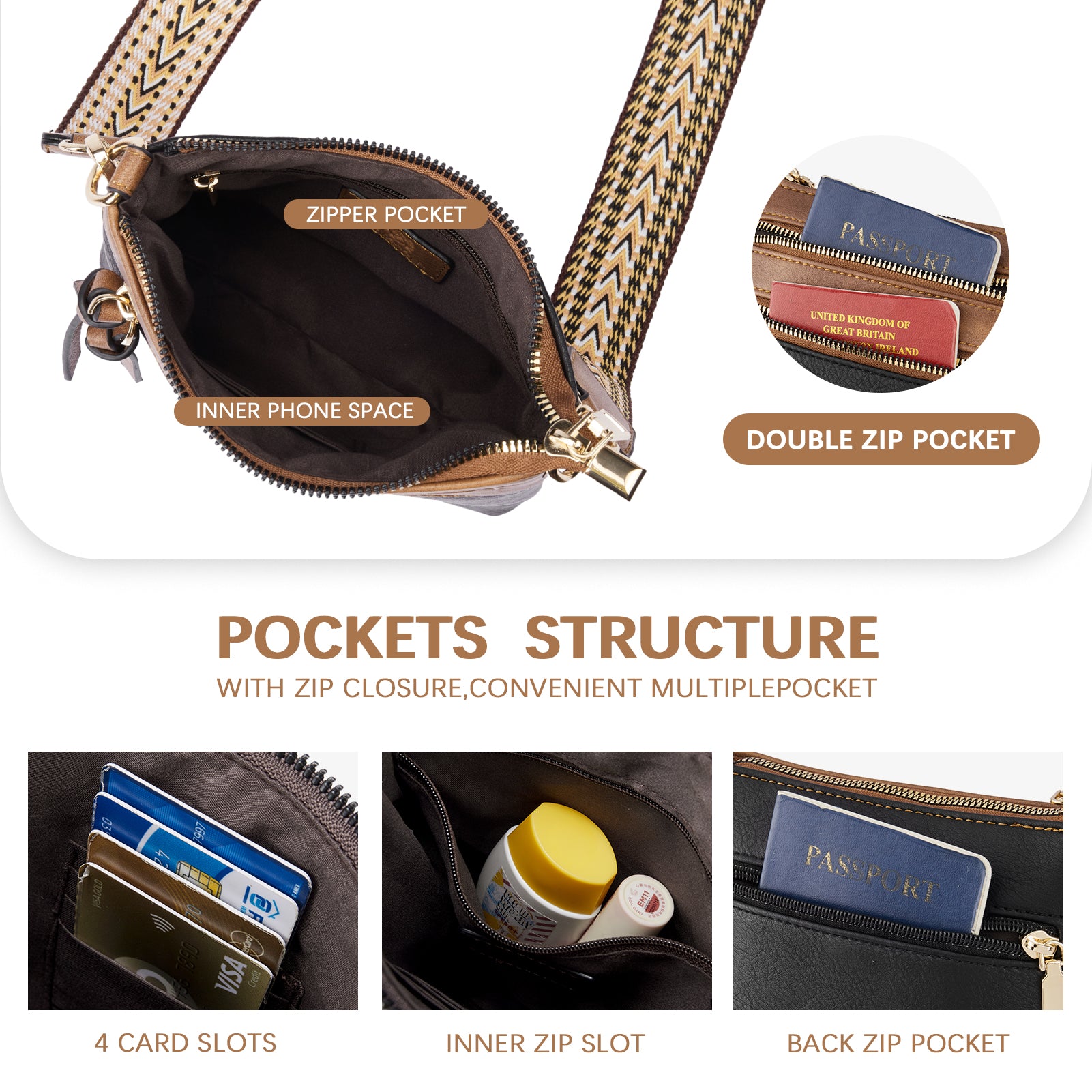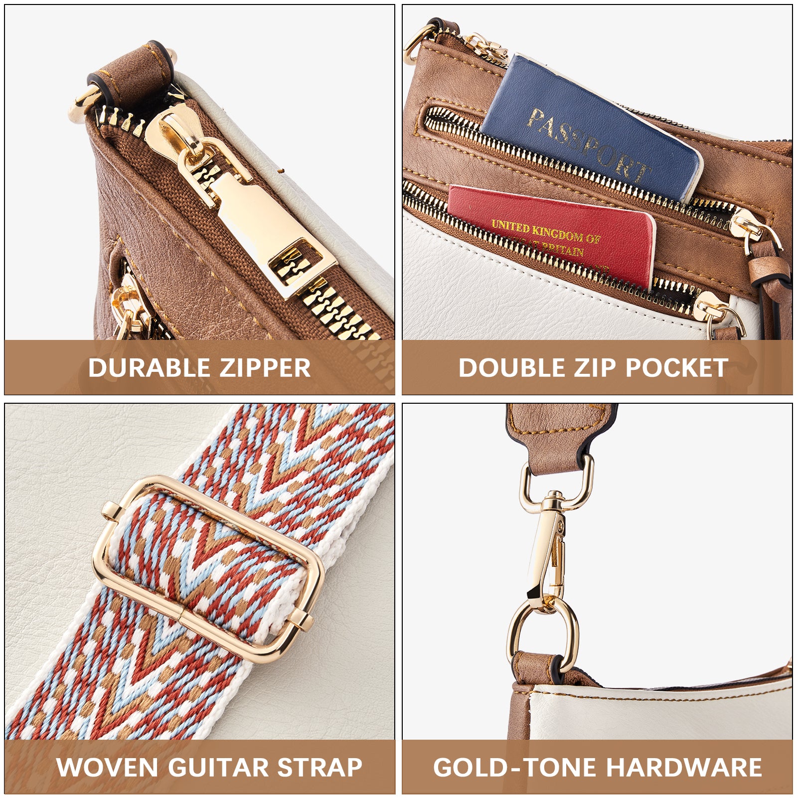 - Premium Cross Body Bag: This small crossbody bag designed for on-the-go style with Multiple zip pocket, Perfectly comes in handy! Made of durable vegan leather with a pretty guitar strap, More color to better fit more outfit styles and compliments your style sense! Gold-tone hardware & Smooth fabric interior show our sophisticated design.