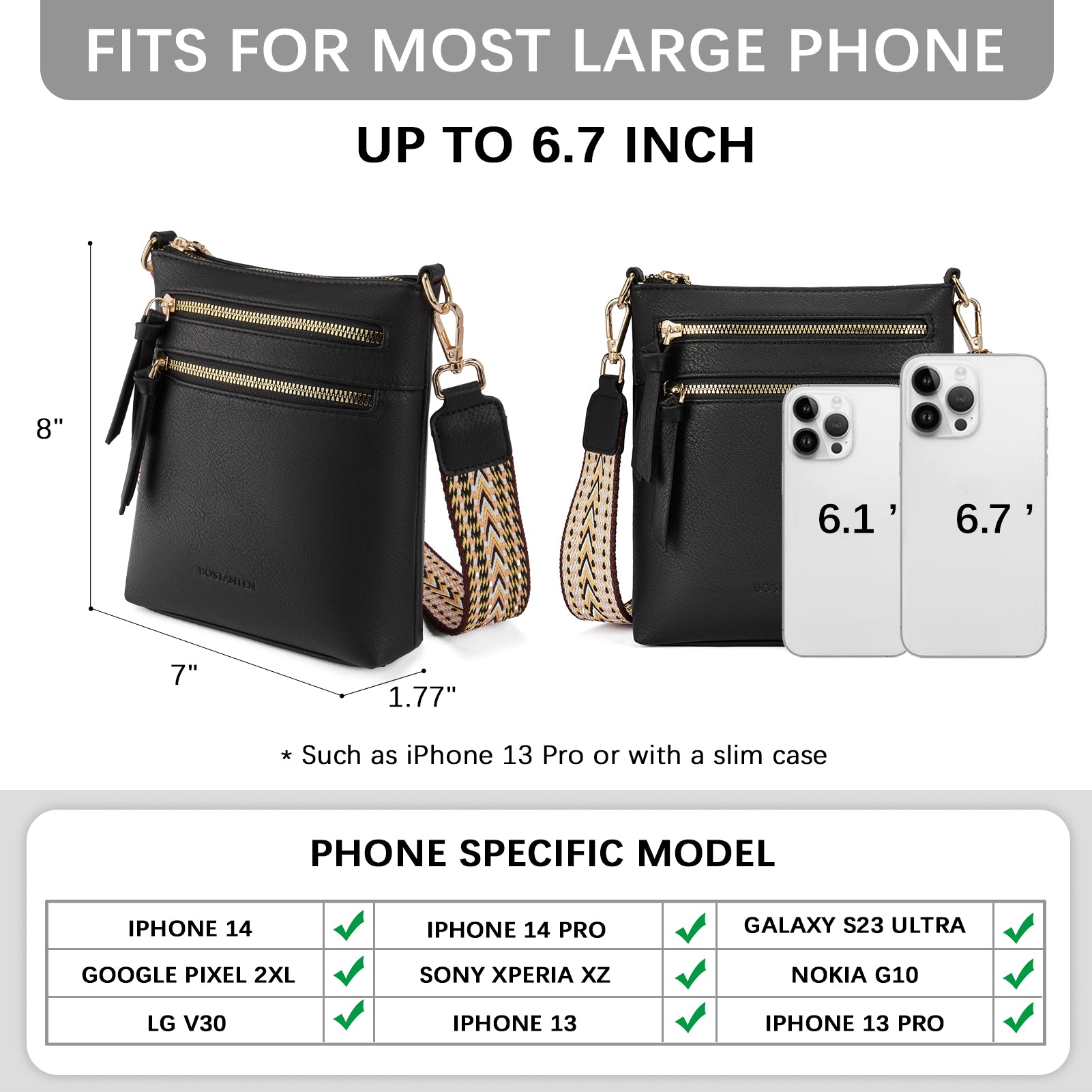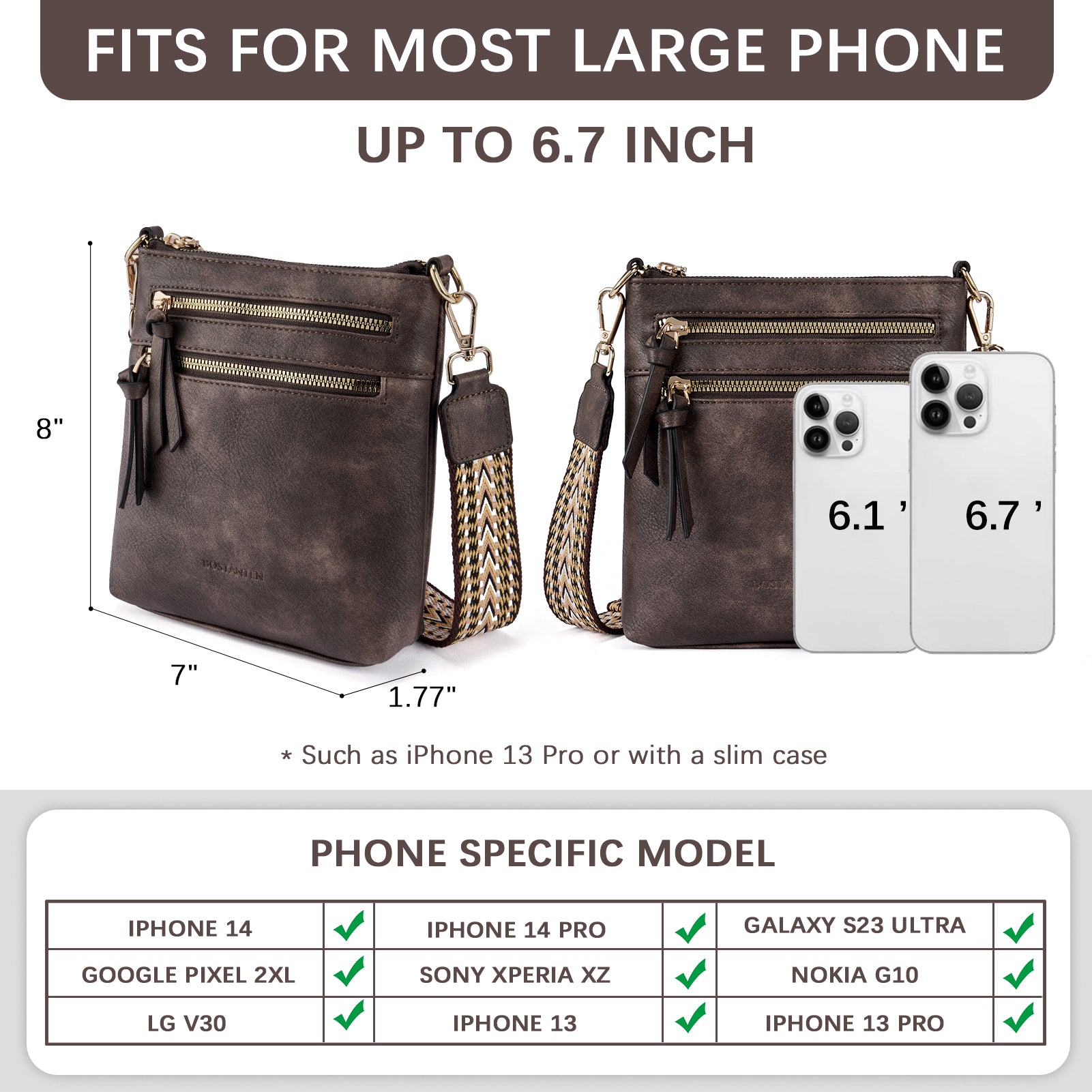 - Free Your Hands: For safely keep phone & Comfortable carrying the small crossbody bag, All zip pocket + Adjustable guitar strap, Would greatly helpful in daily. Top Zipper ensure safety keep phone, It fits most large phone including iPhone 14 Pro, Galaxy S23+ etc. Long strap offer you crossbody or shoulder style in comfortable carrying,Free your hand, Let you enjoy everyday.