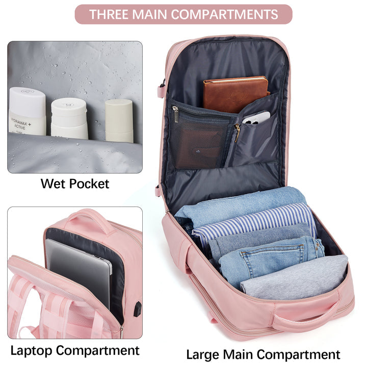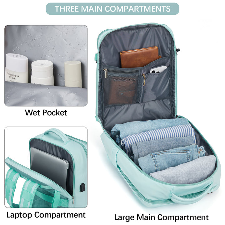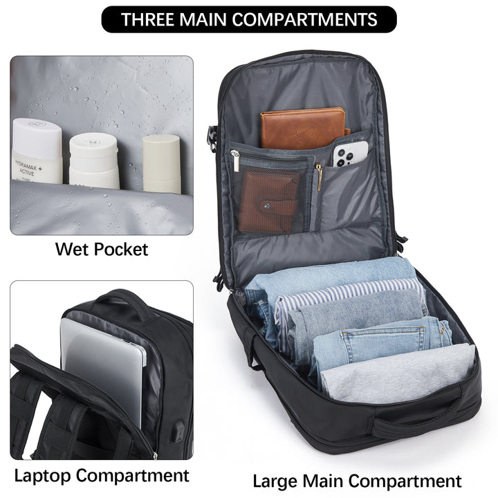 - ❖LARGE CAPACITY &MULTIFUNCTIONAL DESIGN--The main compartment can hold 4-6 pieces of thin tops or pants, which can meet the needs of short trips or business trips for 2-3 days. Separate laptop compartment (with a padded compartment effectively protect your notebook from damage), fits up to 15.6 inch laptop. It can be served as an everyday backpack, professional backpack for a laptop, or daily use anywhere for the weekend.