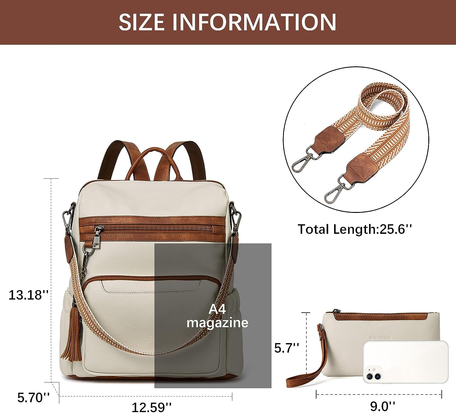 BOSTANTEN Womens Backpack Purse Leather Travel Backpack Fashion Designer Ladies Shoulder Bags with Wristlet