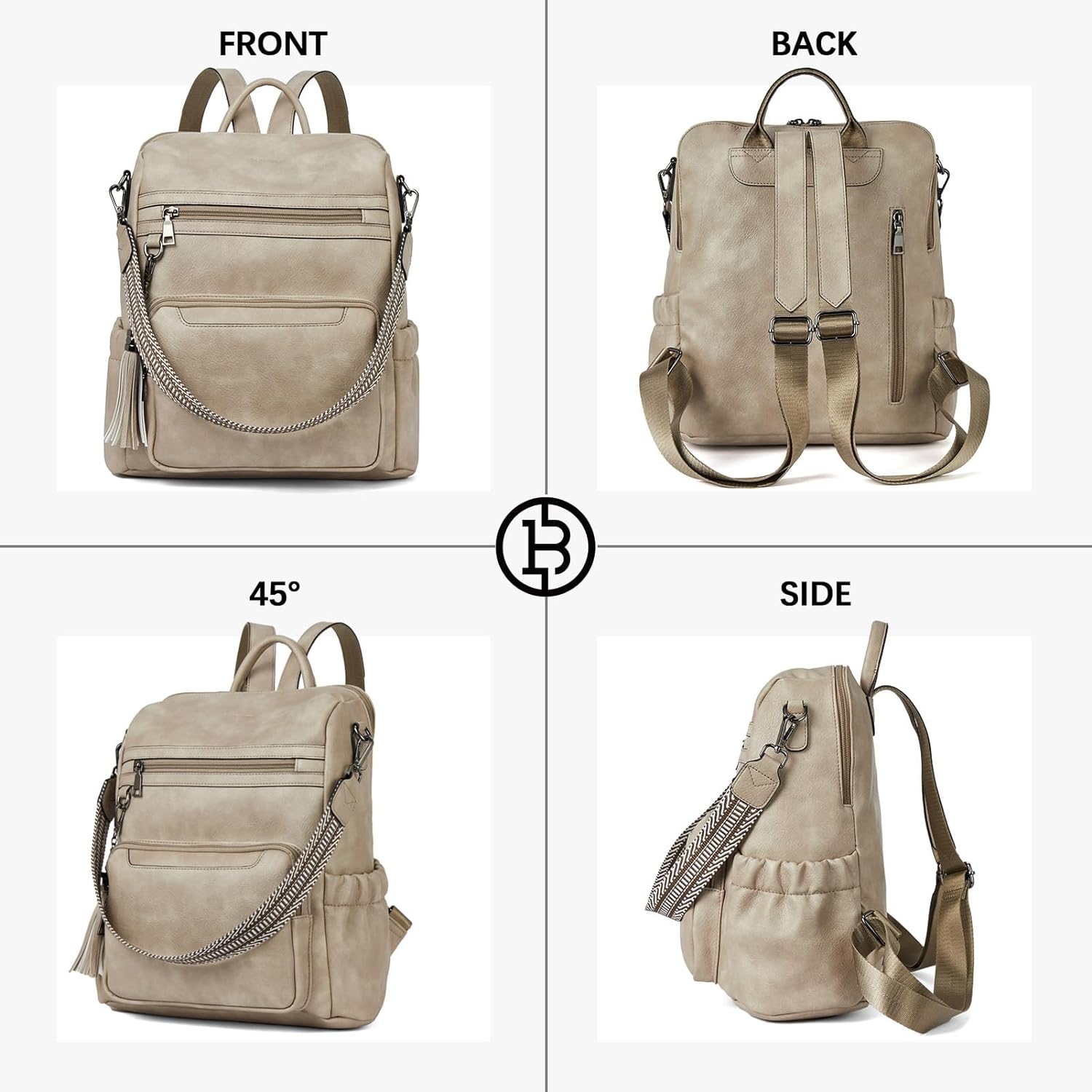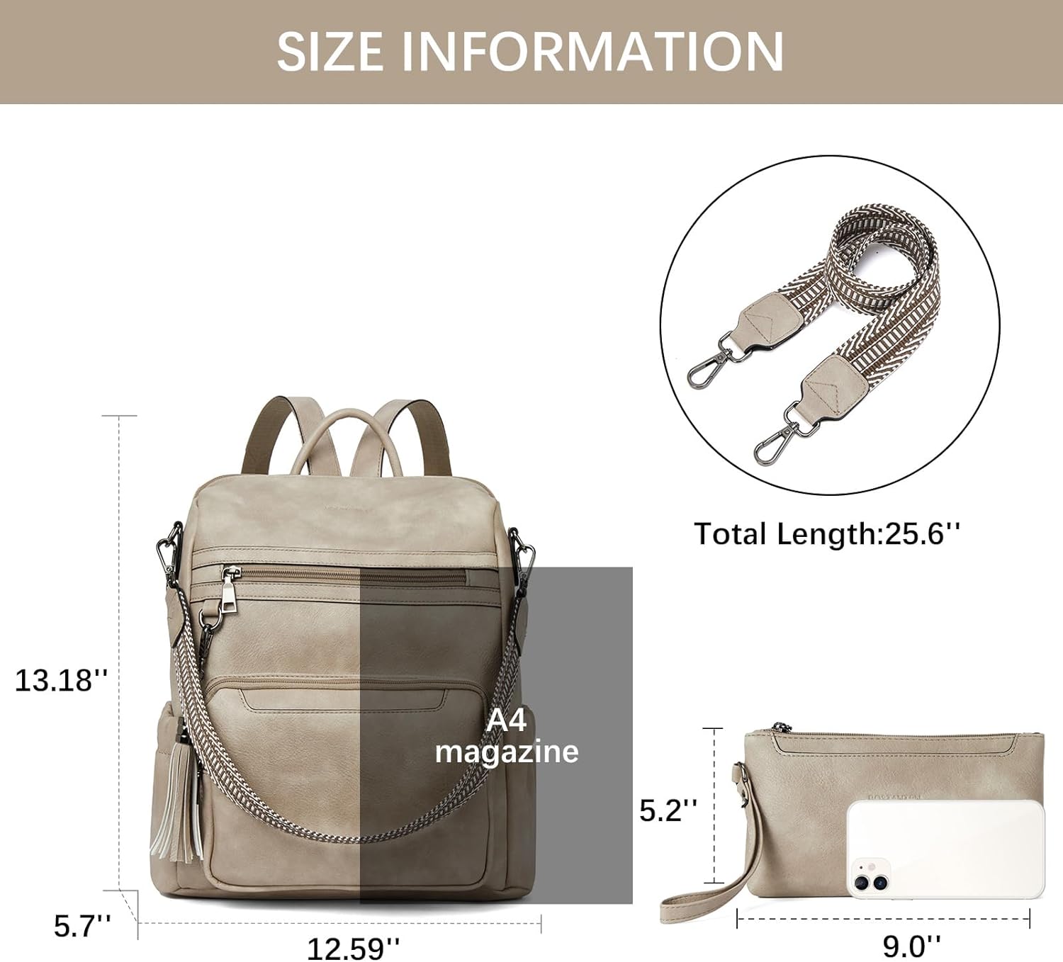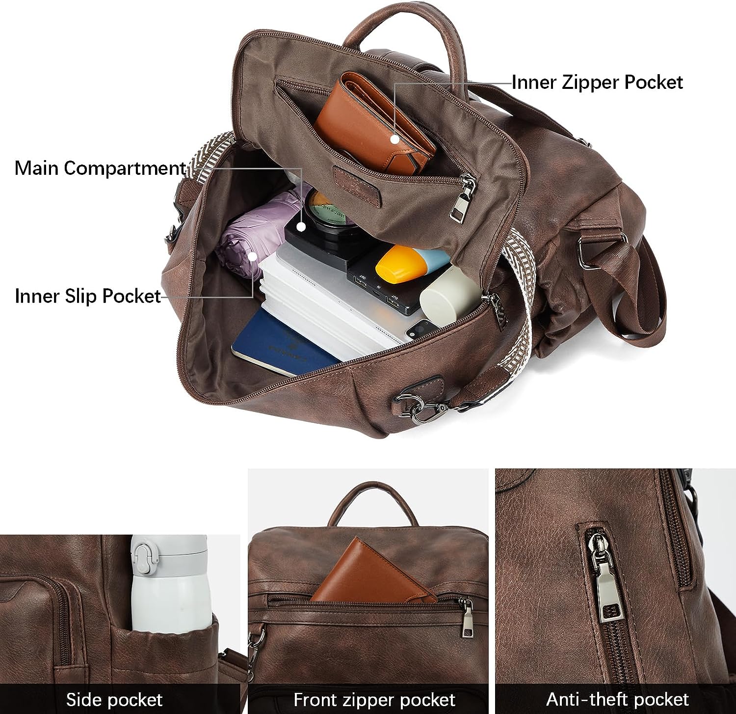 - LARGE CAPACITY -- This leather backpack purse for women is designed with double zipper and large opening for easy loading items. 1 main compartment, 1 inner slip pocket, 1 inner zipper pocket, 2 front zipper pockets, 2 accessible elastic side pockets, and 1 anti-theft zipper pocket. The extra wristlet provides more compartments. Multiple pockets can keep your things well organized.