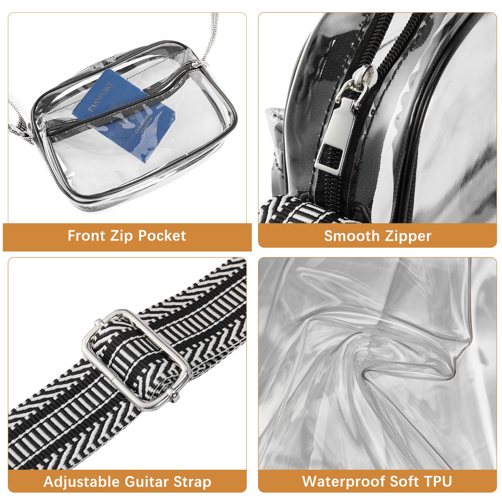 - 【High Quality & Thick TPU】- Our clear stadium bag use thick waterproof TPU, Soft with long service life, Easy to clean & Keeping all your stuff dry all the time(But not immerse in water). And the clear purse is equipped with nice silver-tone hardware. Wide guitar straps are suitable for your comfortable carrying, Also fit more outfit-style.